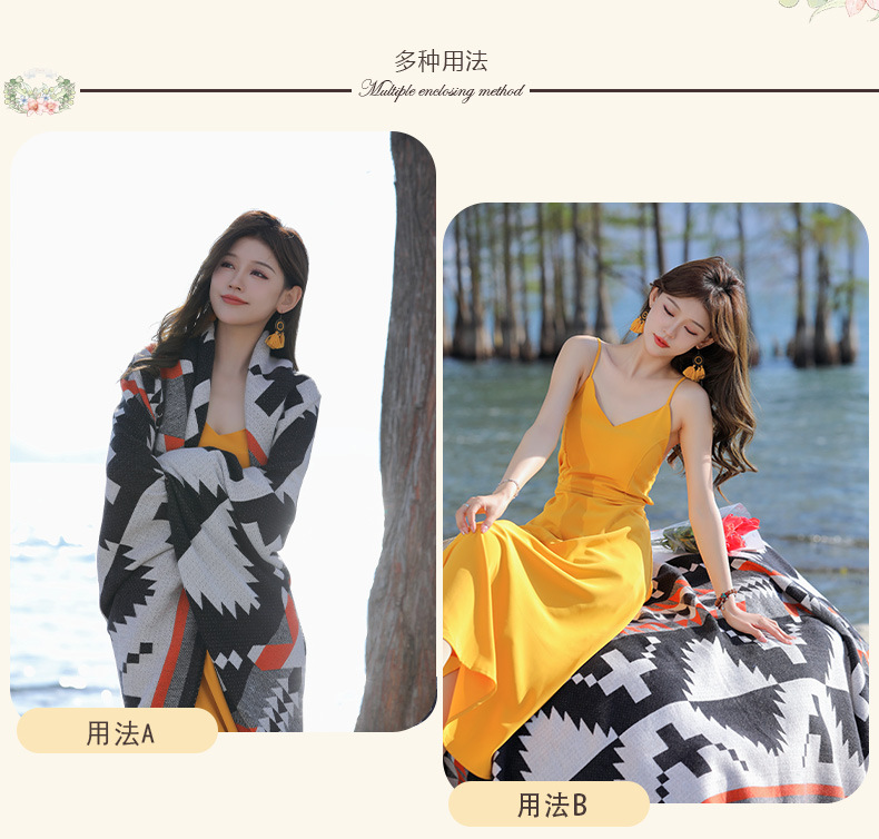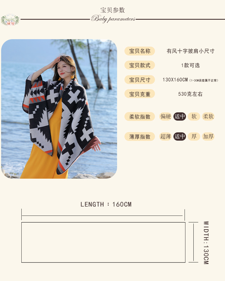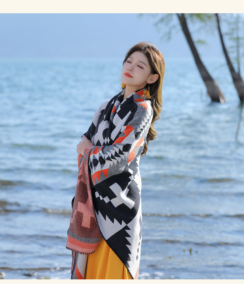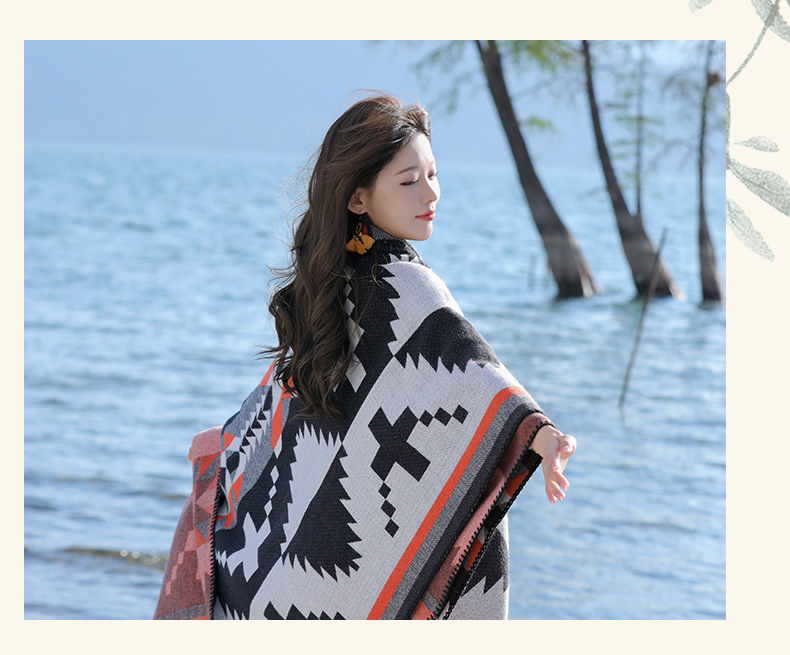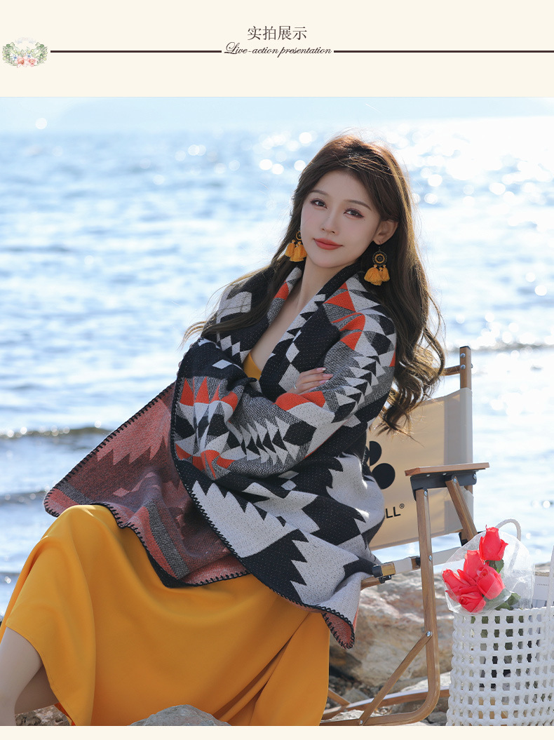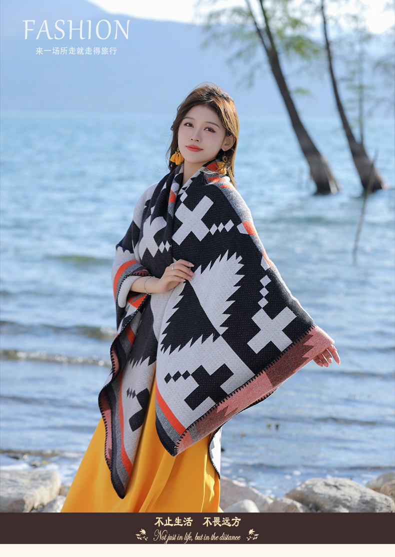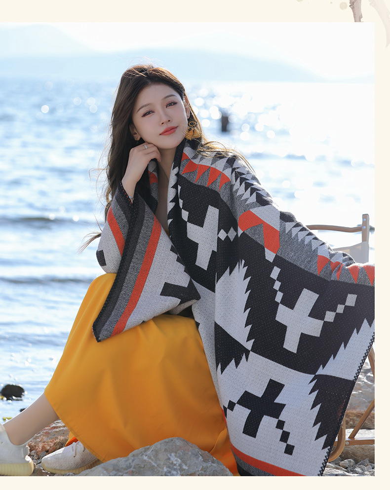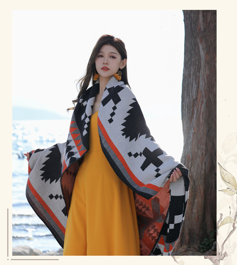 휴가 및 놀이 코트 숄 야외 캐주얼 패션 독특한 스카프 크로스 프린트 패턴 여행 망토