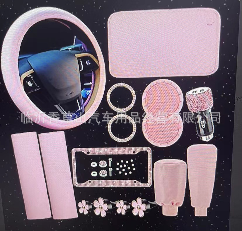 크로스 보더 자동차 인테리어 액세서리 스티어링 휠 커버 어깨 패드 기어 팔걸이 핸드 브레이크 커버 번호판 코스터 자동차 충전기 세트스토어 가기