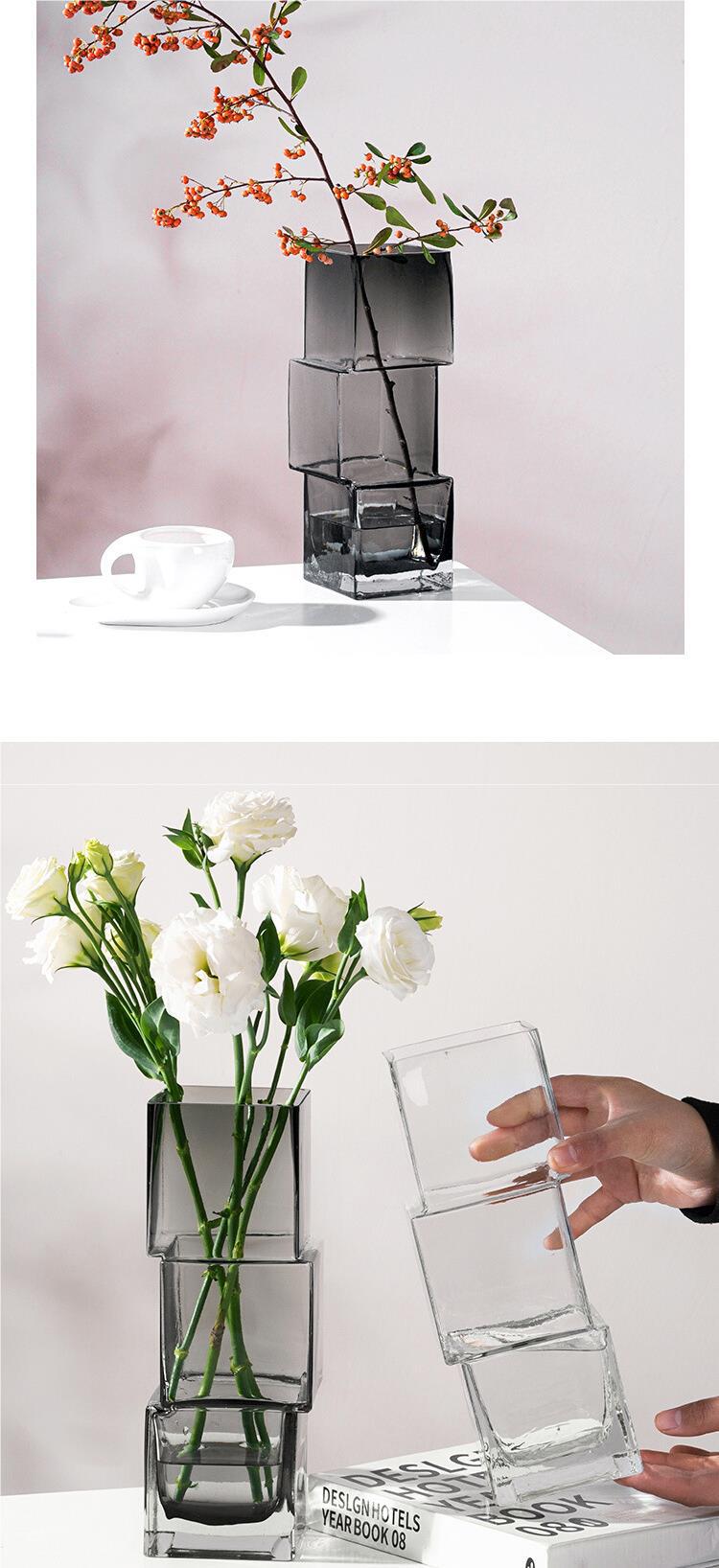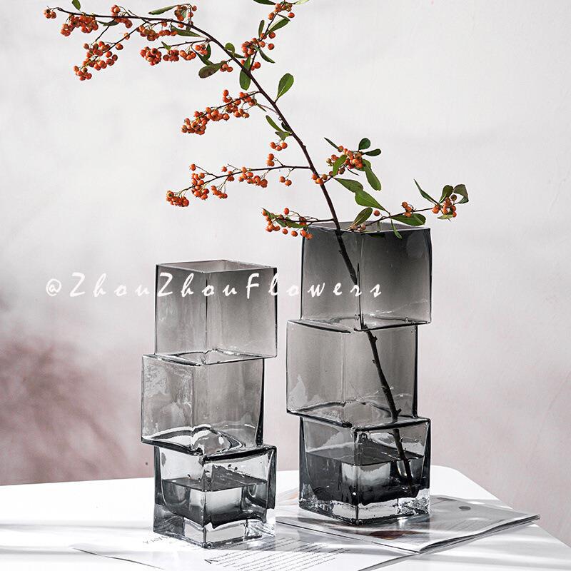 스타일 크리 에이 티브 잘못 배치 유리 투명 꽃병 빛 고급 데스크탑 장식품 고급 감각 인터넷 연예인 물 성장 꽃스토어 가기