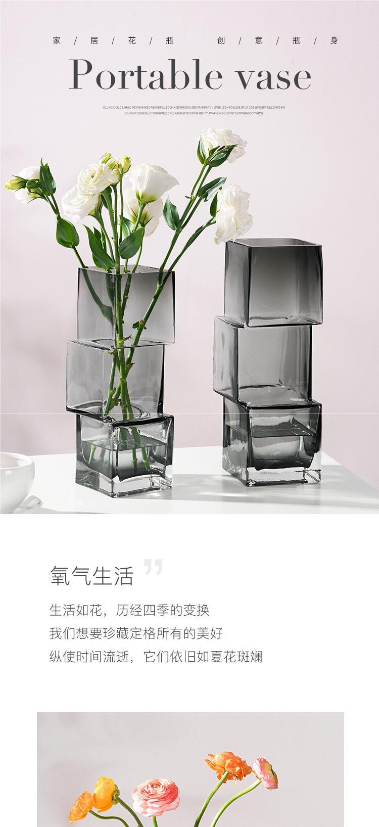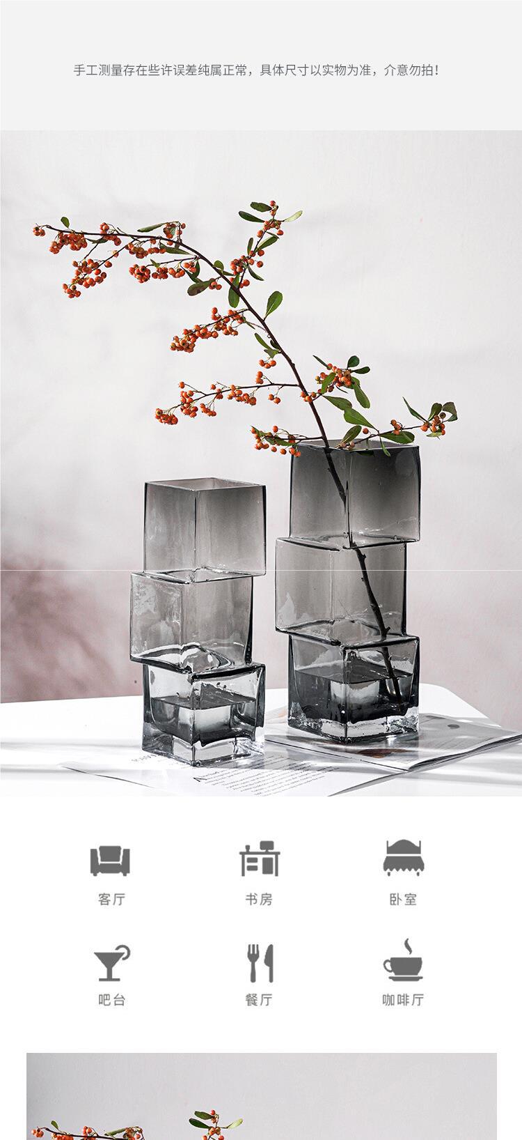스타일 크리 에이 티브 잘못 배치 유리 투명 꽃병 빛 고급 데스크탑 장식품 고급 감각 인터넷 연예인 물 성장 꽃