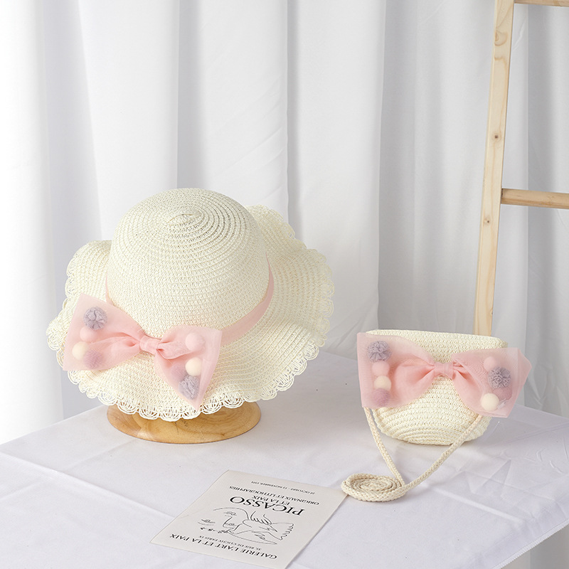 어린이 밀짚 모자 여름 달콤한 아기 소녀의 활 자외선 차단제 밀짚 모자 소녀의 가방 세트 세련된 태양 모자