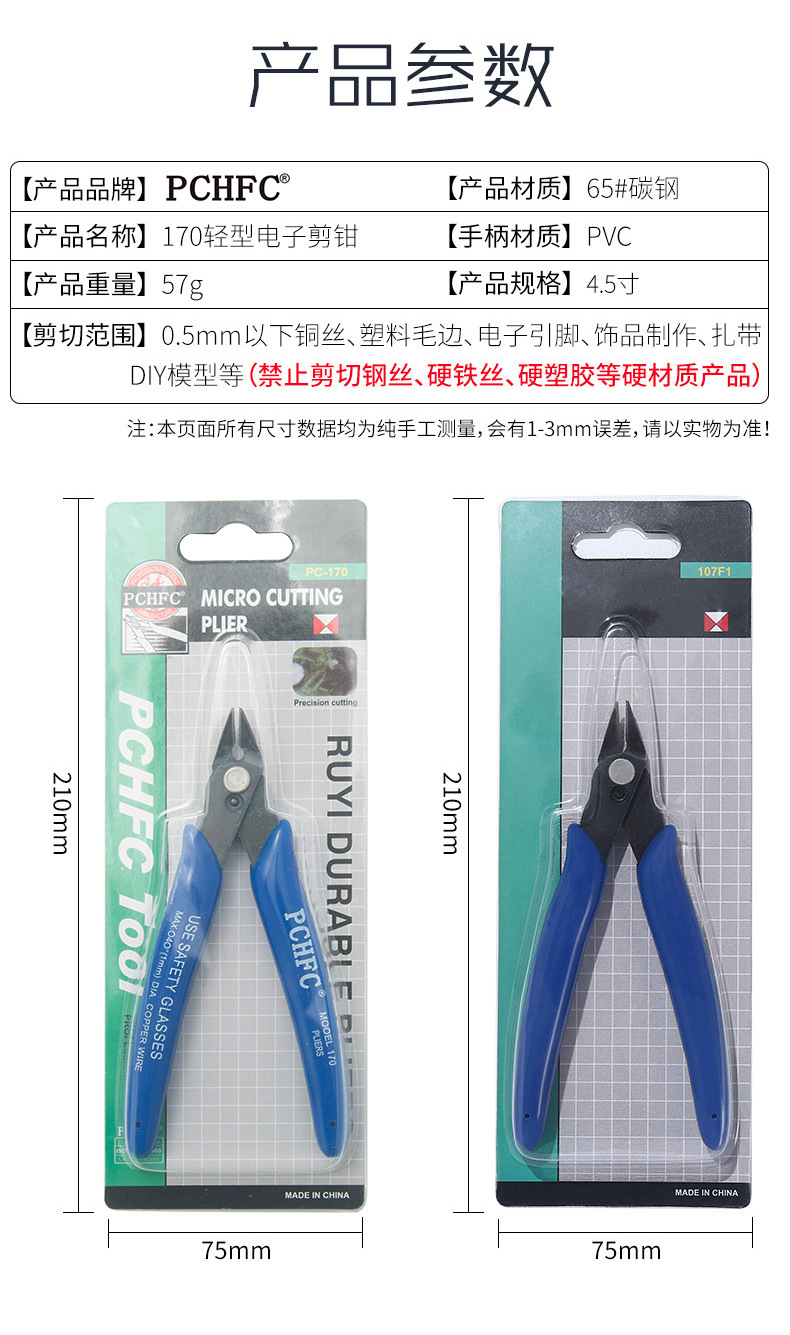 다양한 색상 PCHFC-170 모든 종류의 포장 건담 모델 펜치 170II 전자 물 입 펜치 대각선 펜치