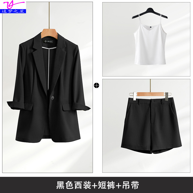 • 2J247 블랙 세트 + 반바지 + 화이트 브이넥 스트랩