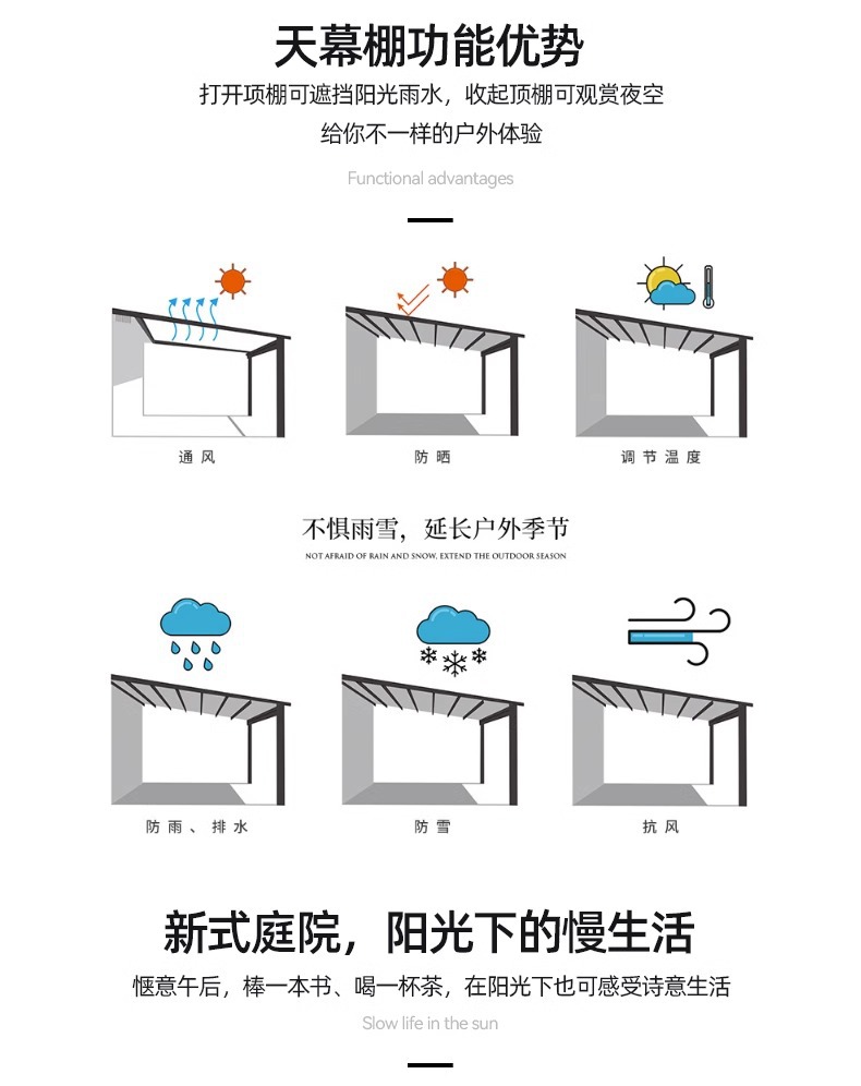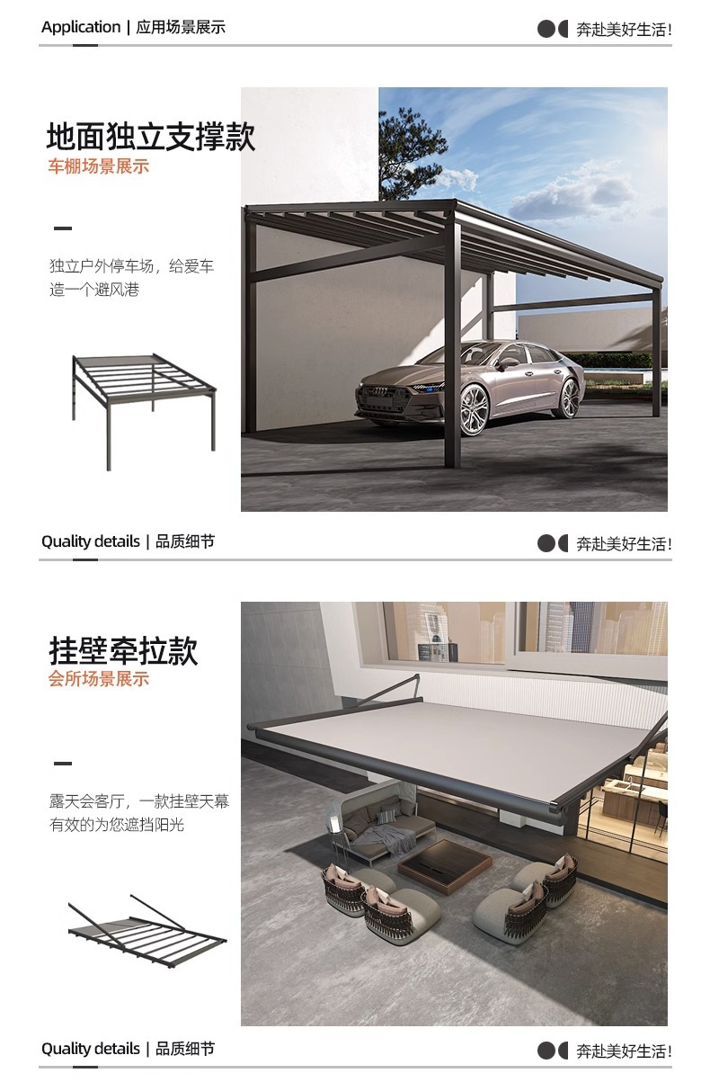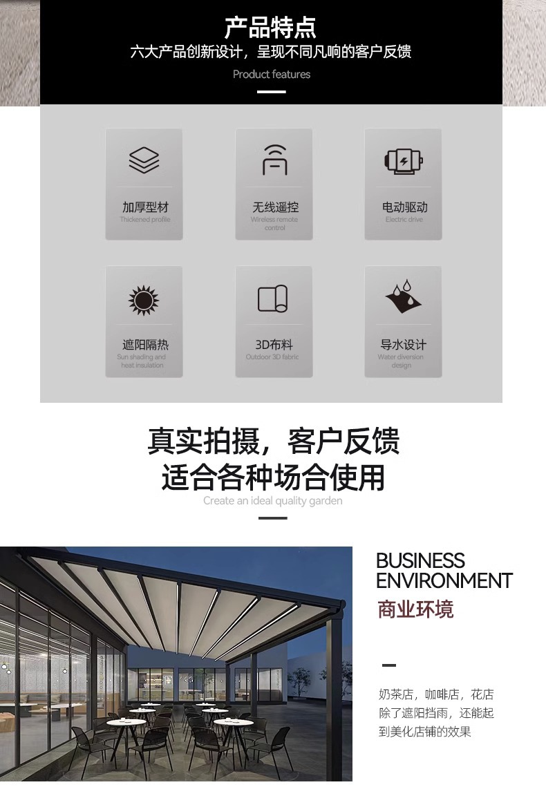 전기 캐노피 접이식 텔레스코픽 야외 야외 야외 레스토랑 안뜰 빌라 텔레스코픽 캐노피 그늘 단열 캐노피