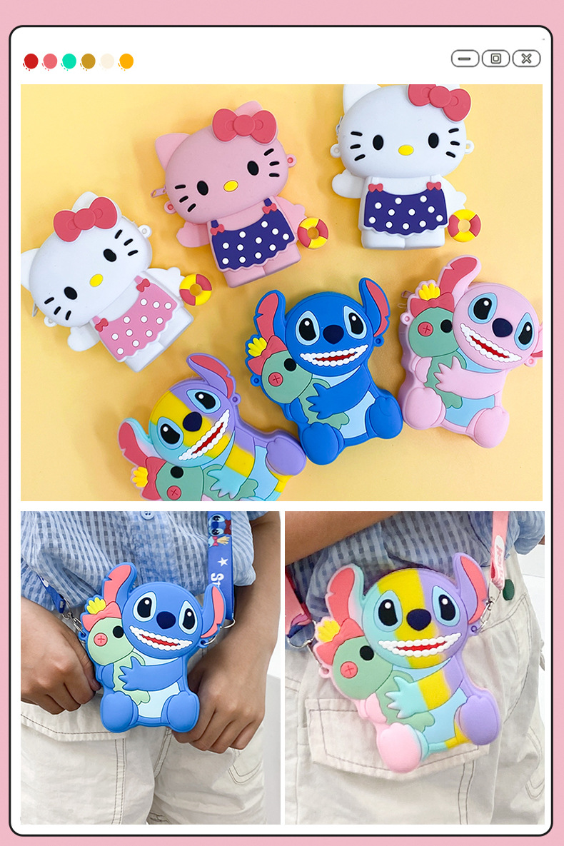 2024년 신상 귀여운 만화 어린이 가방, 가을 소녀용 실리콘 숄더백, 동전 지갑스토어 가기