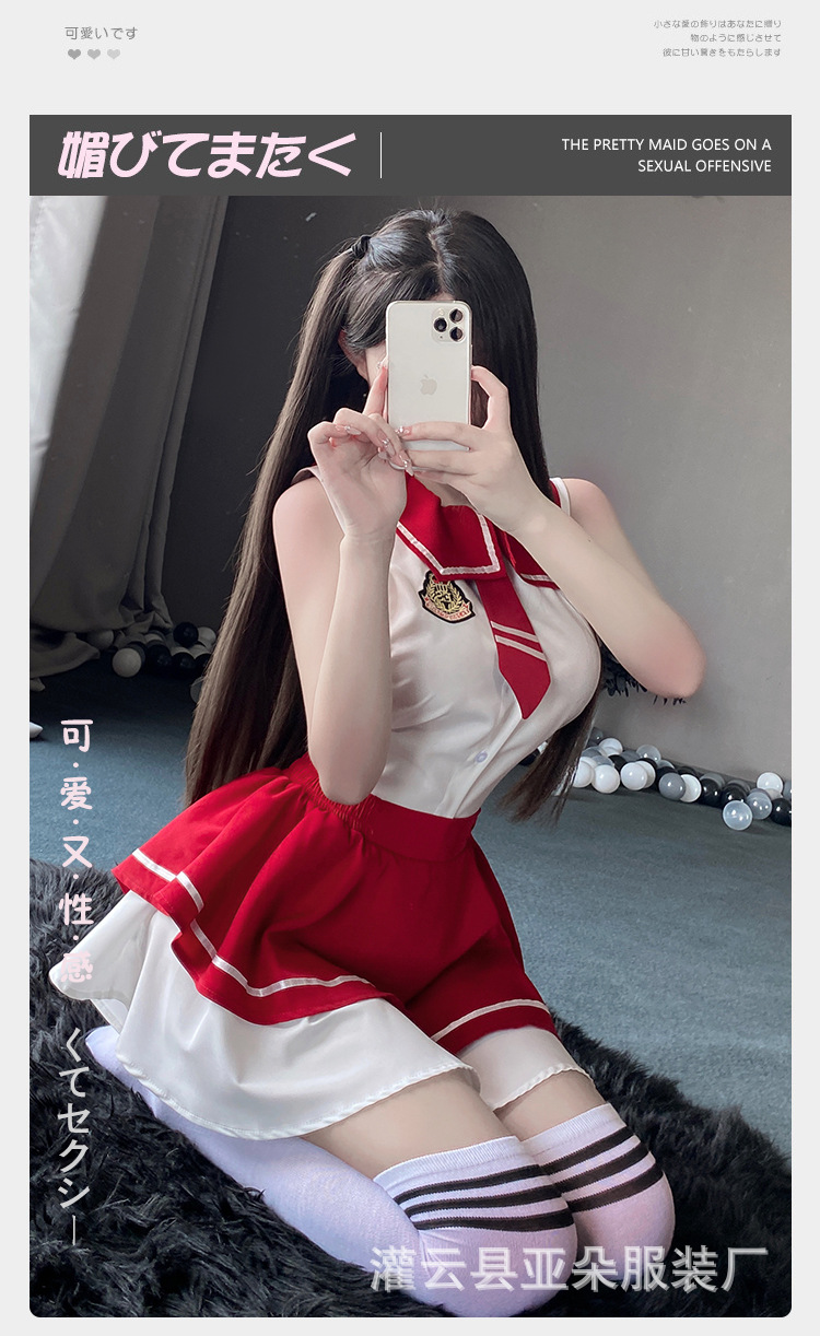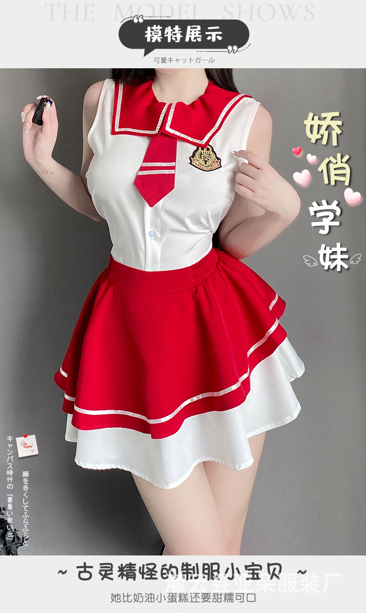섹시한 속옷 섹시한 스트랩 유혹 높은 통풍구 학생 원피스 중공 순수 침대 유니폼 세트 2729