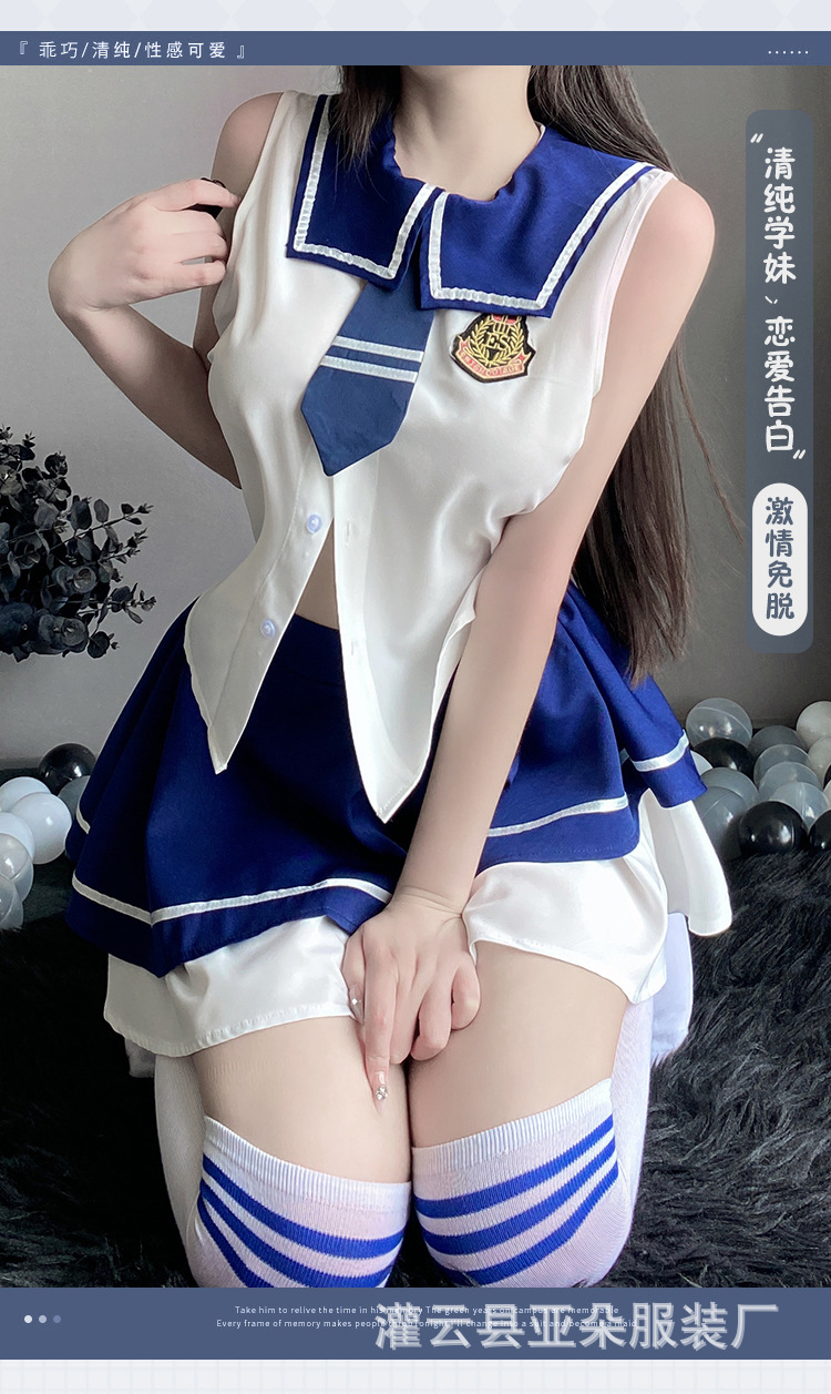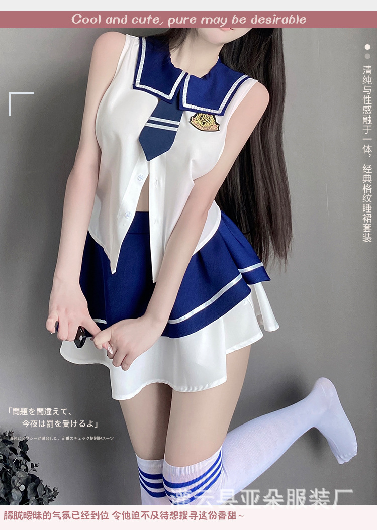 섹시한 속옷 섹시한 스트랩 유혹 높은 통풍구 학생 원피스 중공 순수 침대 유니폼 세트 2729스토어 가기