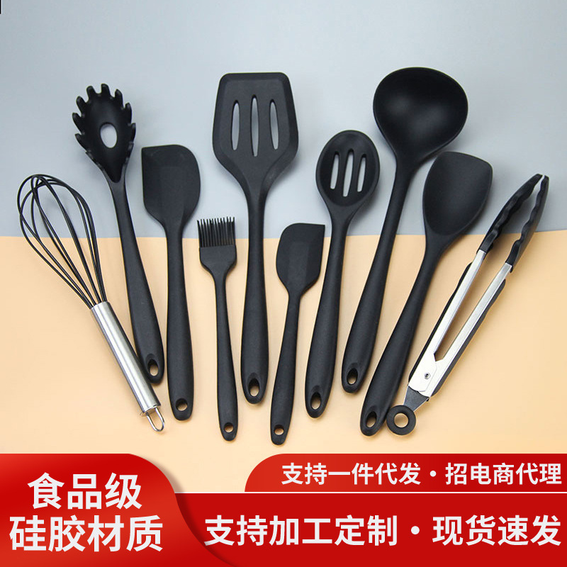 실리콘 주방 용품 10 개 세트 컬러 박스 논스틱 요리 주걱 스푼 클립 주방 도구 베이킹 도구 제조 업체 재고