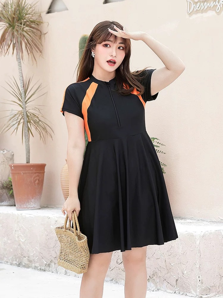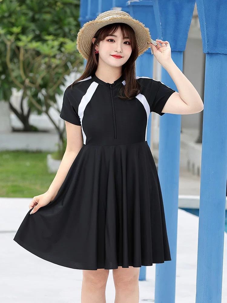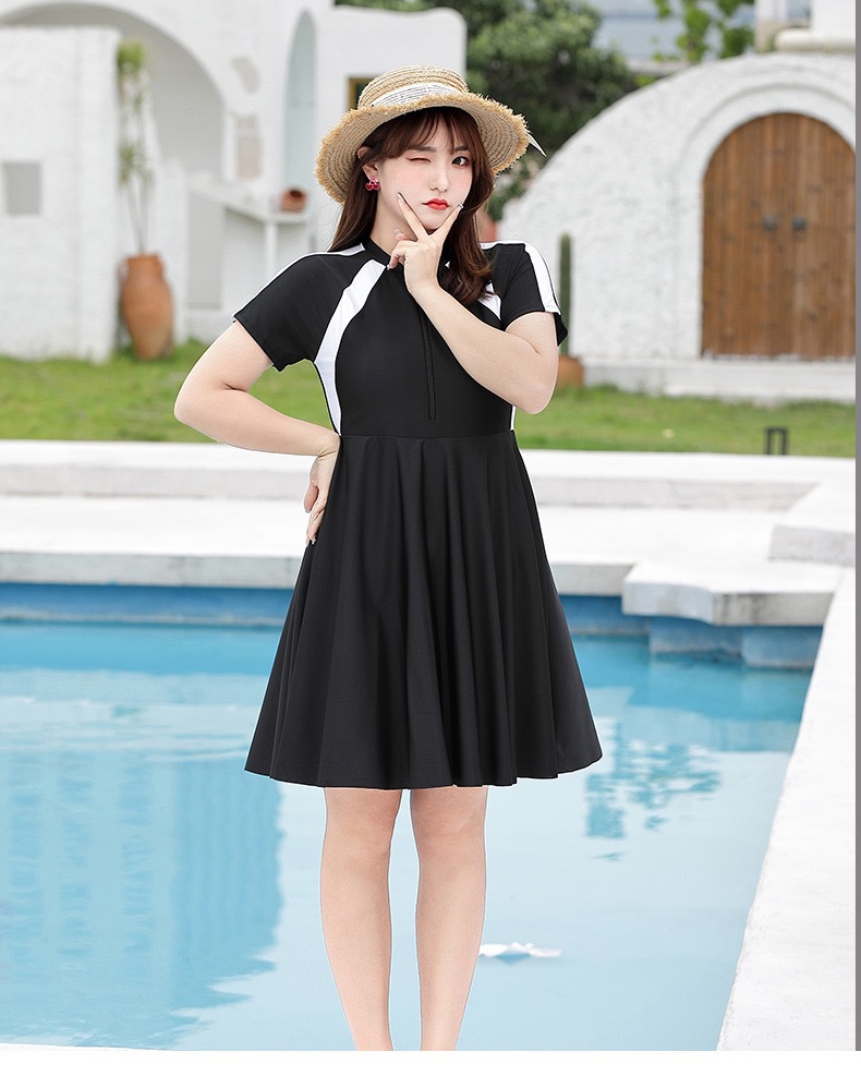 새로운 플러스 사이즈 수영복 여자의 슬림 배꼽 커버 원피스 스커트 큰 가슴 섹시 통통녀 배꼽 커버 수영복 복서스토어 가기