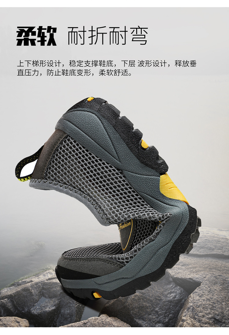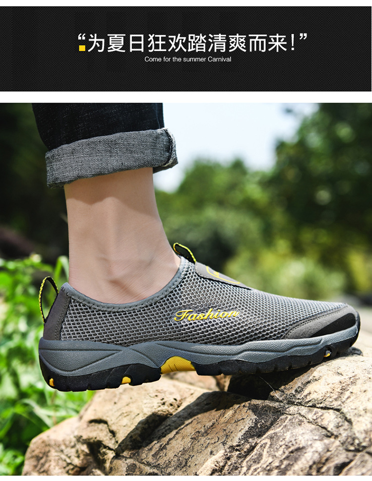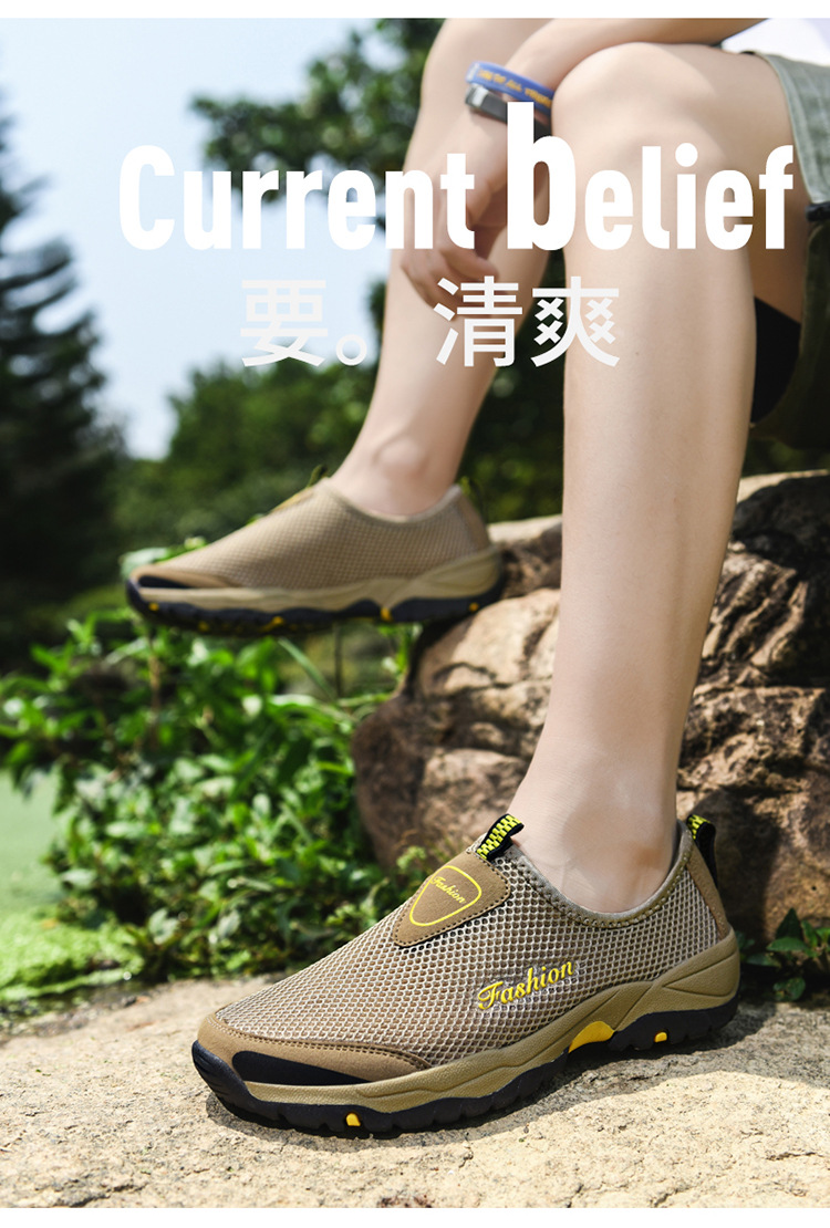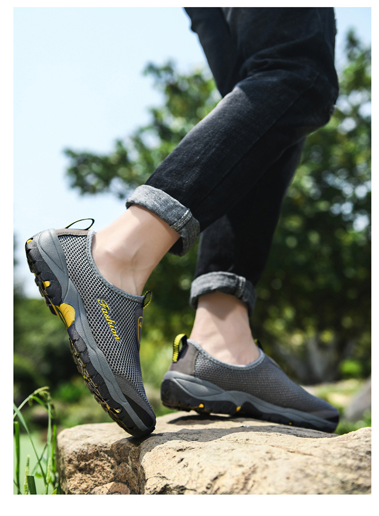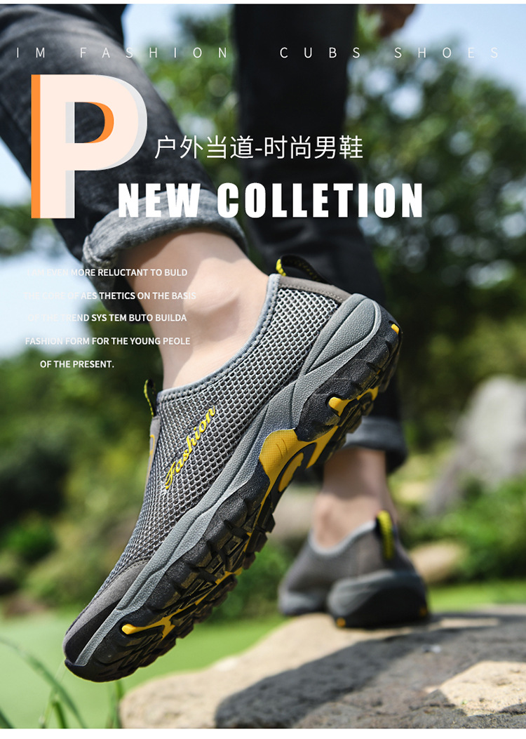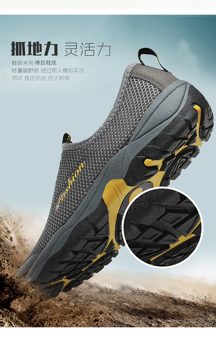 크로스-보더 폭발 남자의 신발 야외 신발 발 통기성 구멍 메쉬 하나의 페달 플러스 사이즈 미끄럼 방지 등산 러닝 운동화