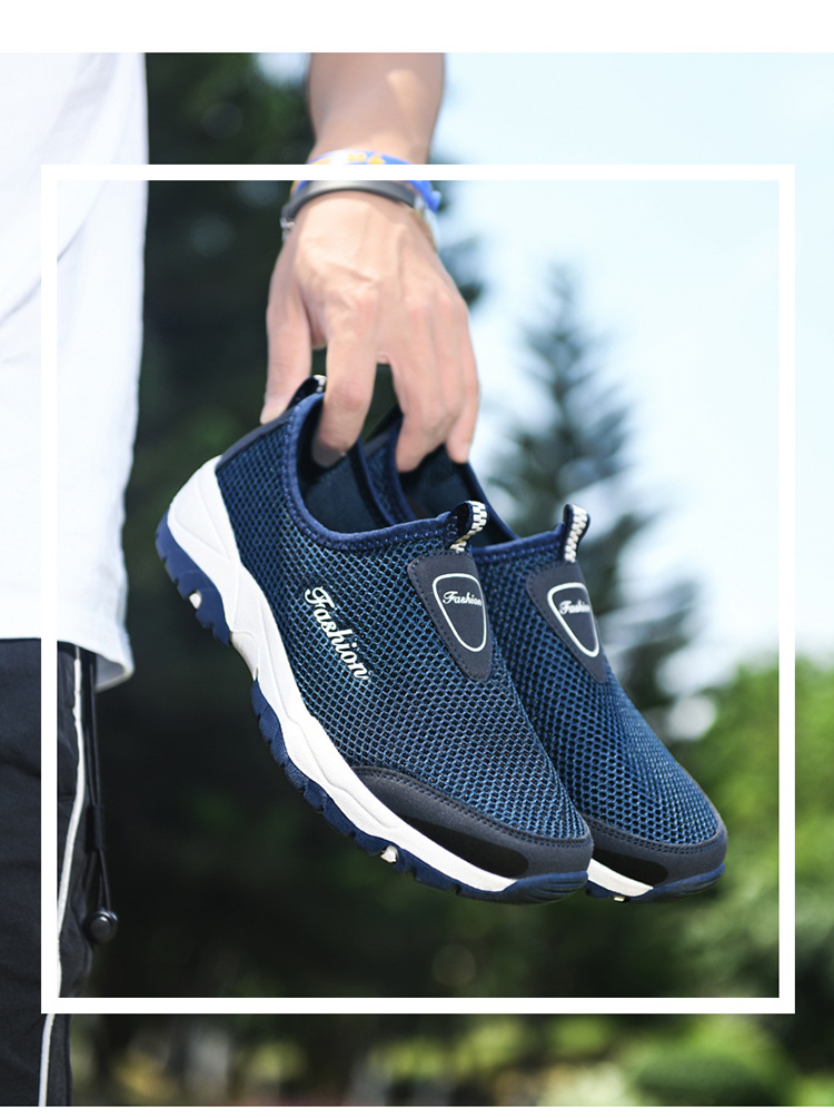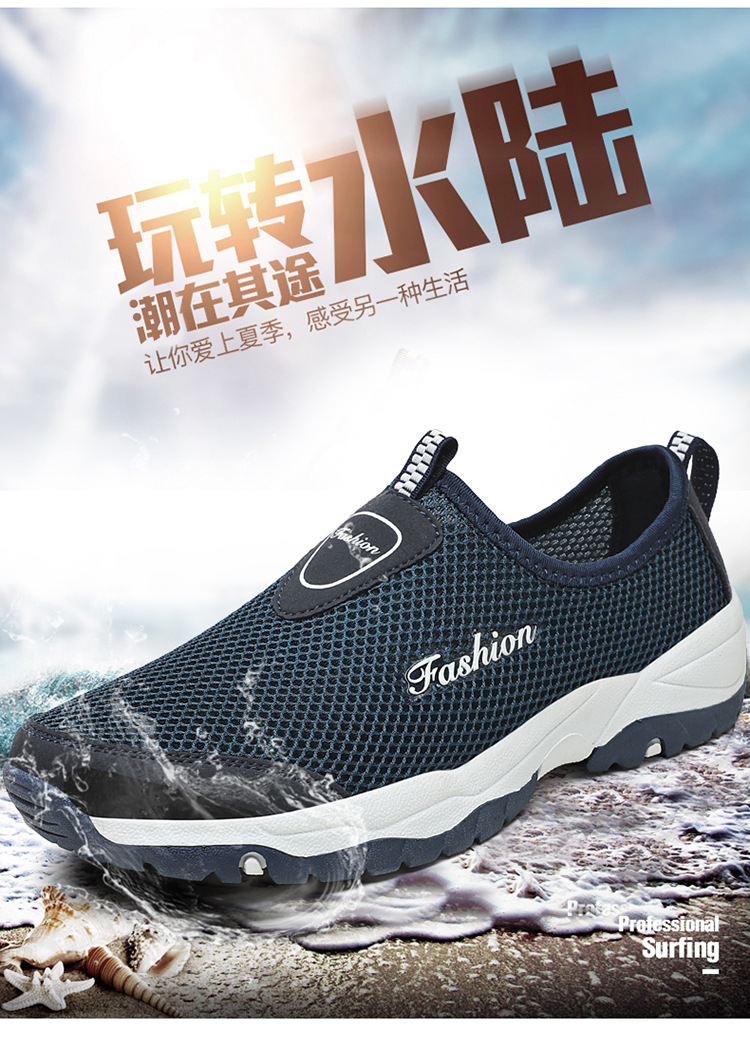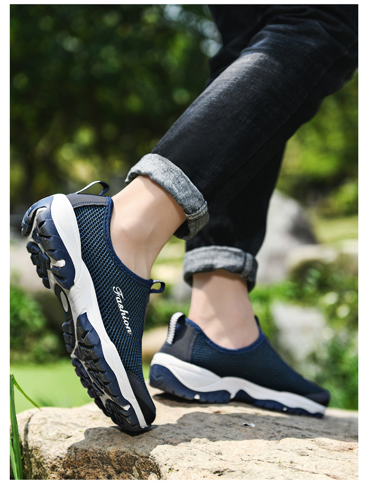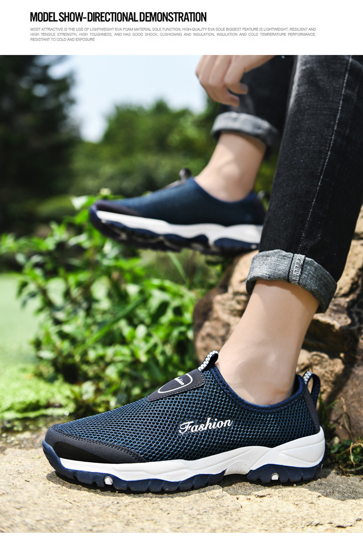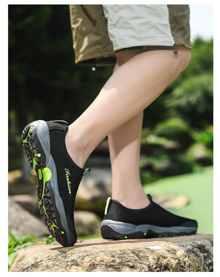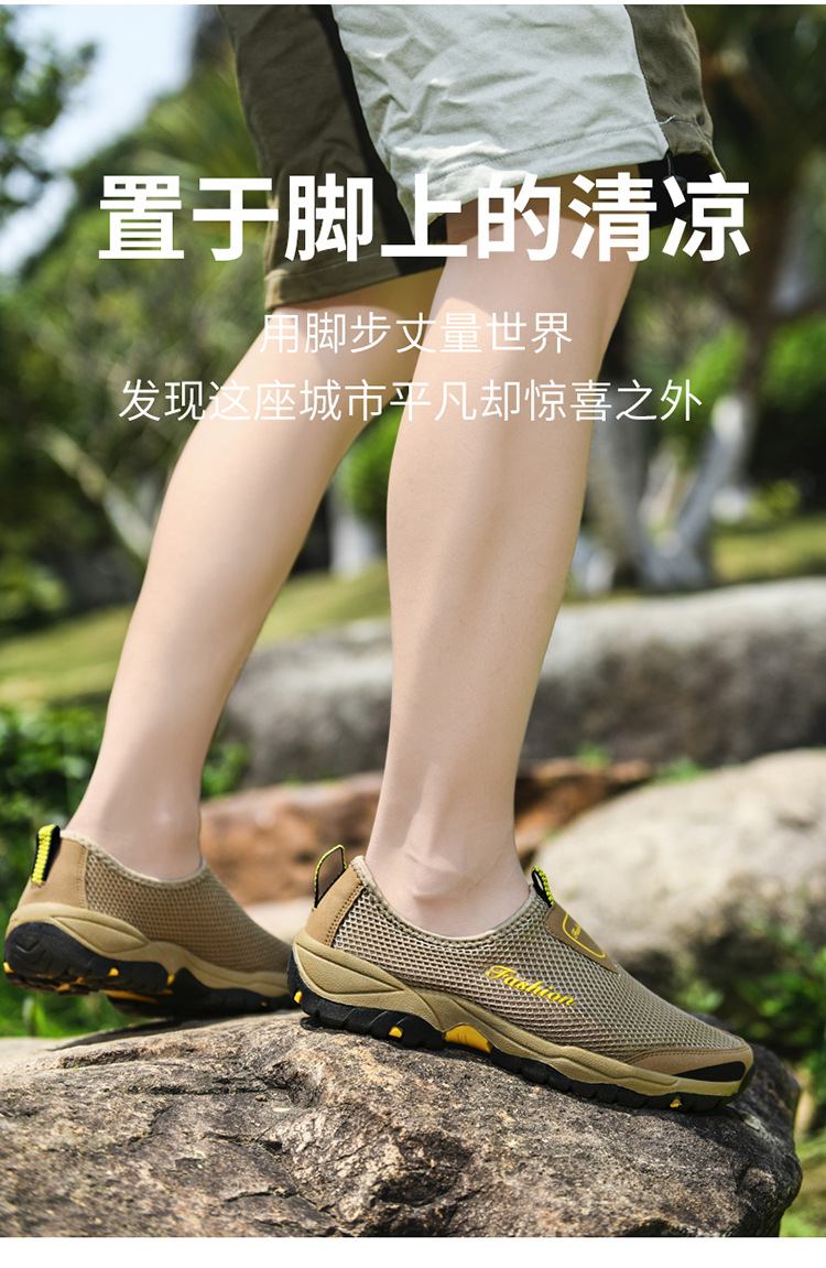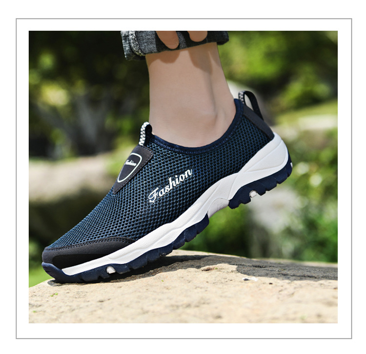 크로스-보더 폭발 남자의 신발 야외 신발 발 통기성 구멍 메쉬 하나의 페달 플러스 사이즈 미끄럼 방지 등산 러닝 운동화