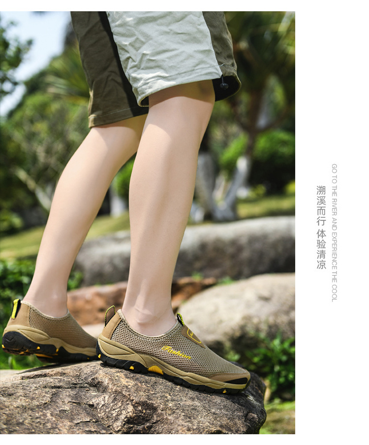 크로스-보더 폭발 남자의 신발 야외 신발 발 통기성 구멍 메쉬 하나의 페달 플러스 사이즈 미끄럼 방지 등산 러닝 운동화스토어 가기