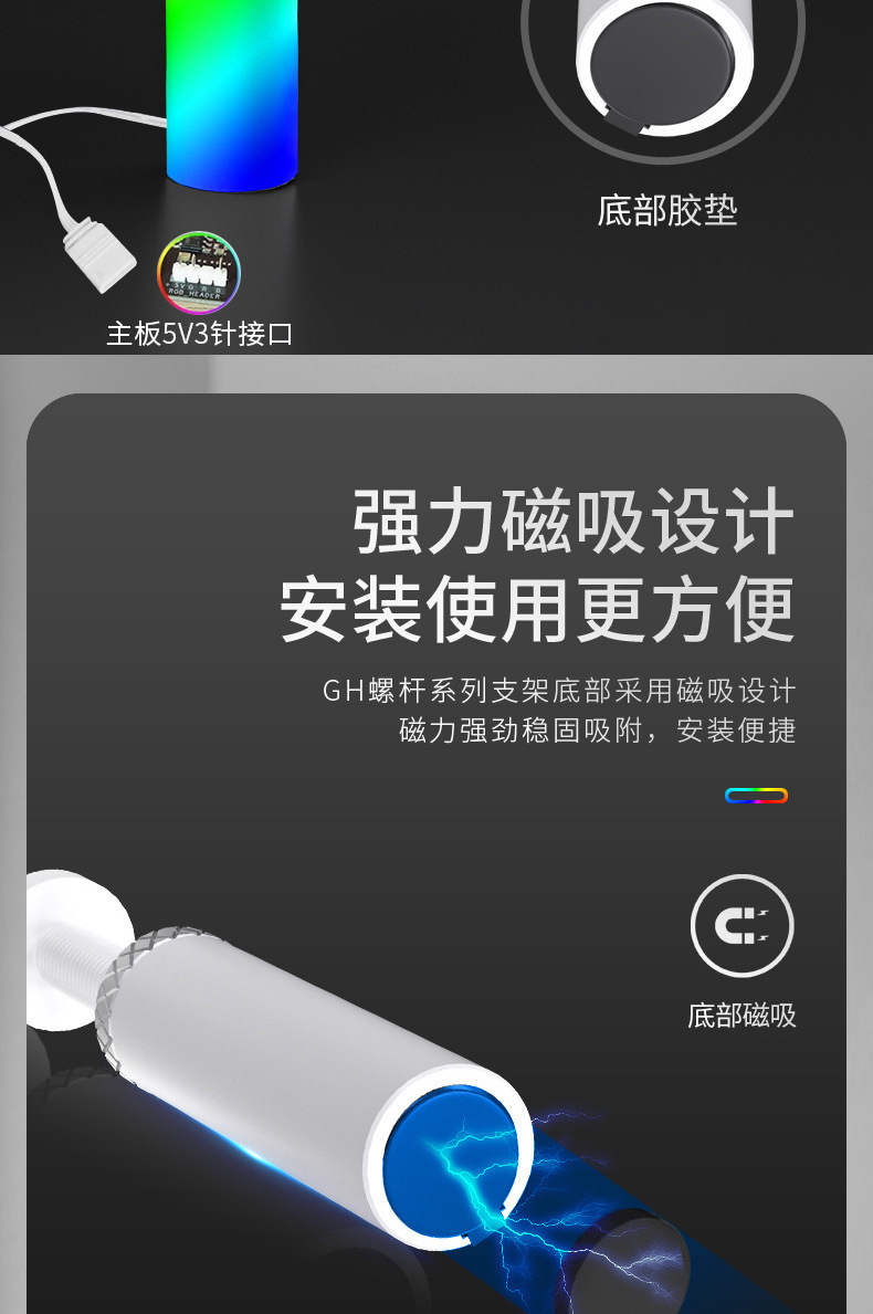 • 실버 조명 ARGB (긴 자기 80-130MM 조정 가능)