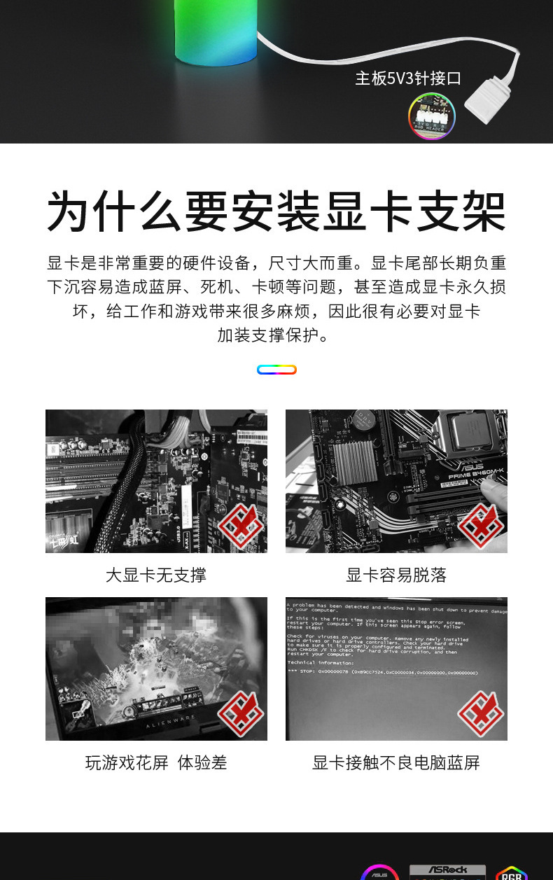 컴퓨터 그래픽 카드 브래킷 지원 프레임 argb 호스트 데스크탑 지원 막대 알루미늄 합금 브래킷 창조적 인 자기베이스