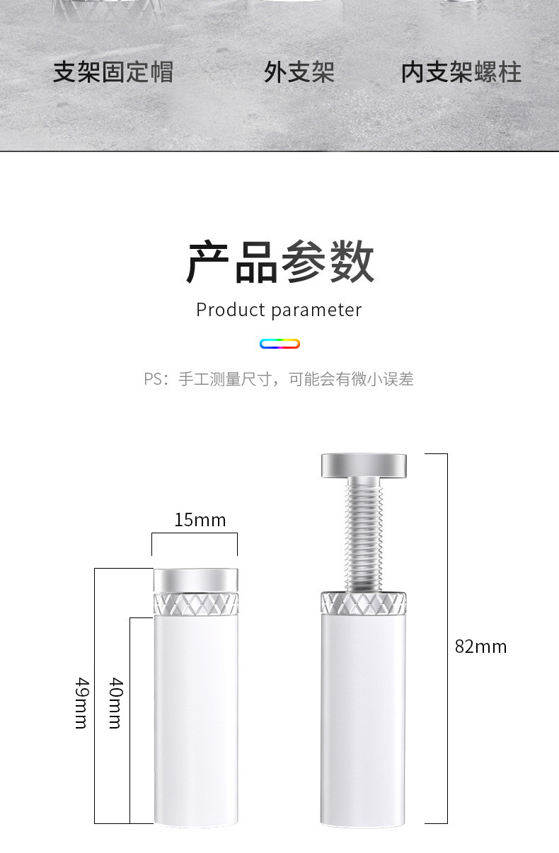 • 은색 강화 베이스, 중간 크기(자기 길이는 약 49-80MM, 접이식)