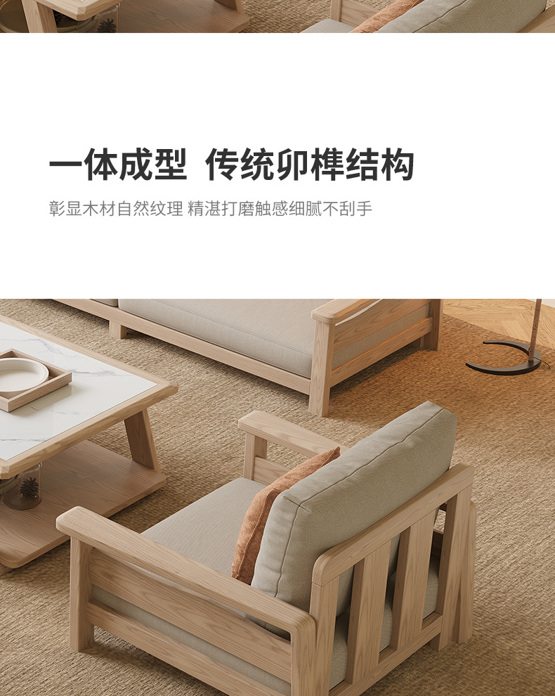 侘寂风白蜡木实木沙发小户型现代简约大气客厅沙发椅组合家具全套