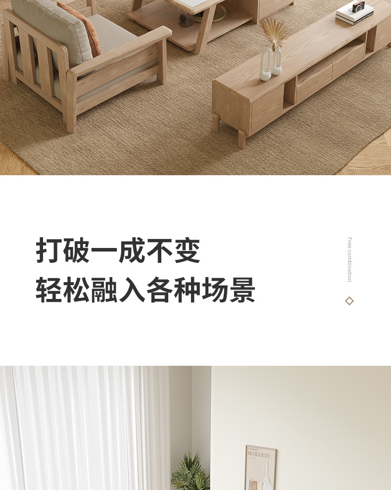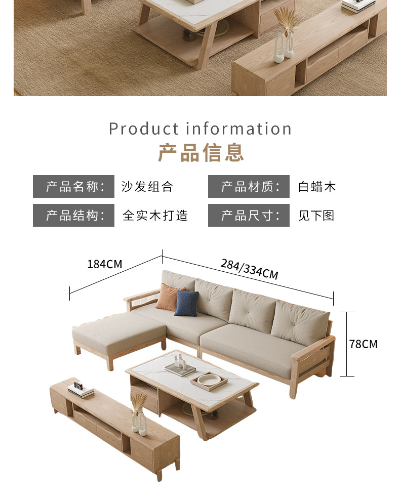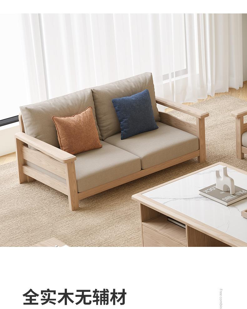 侘寂风白蜡木实木沙客厅实木家具全套小户型家用北欧沙发组合批发