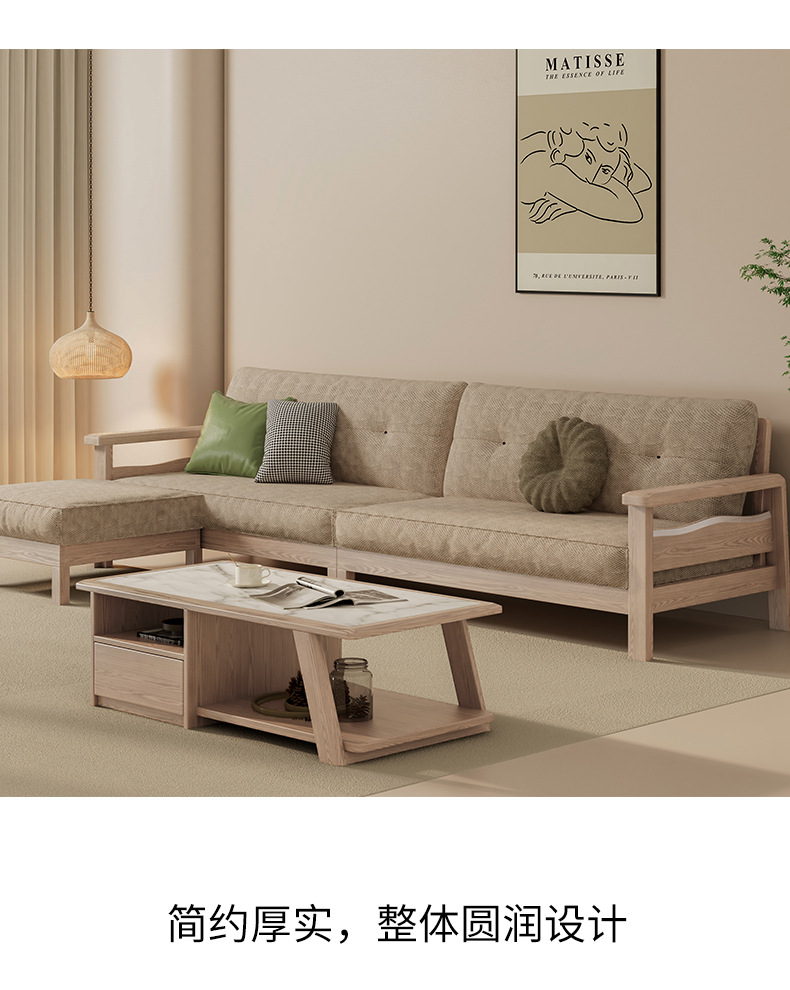 侘寂风白蜡木实木沙发新中式布艺沙发组合家具套装小户型贵妃沙发