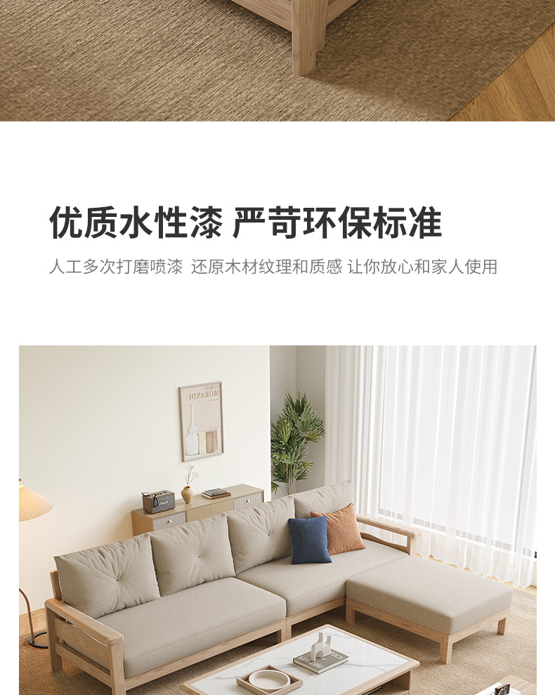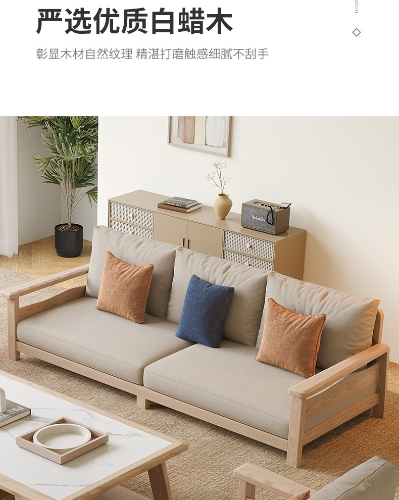 意式极简白蜡木实木沙发原木风小户型客厅冬夏两用布艺沙发椅组合