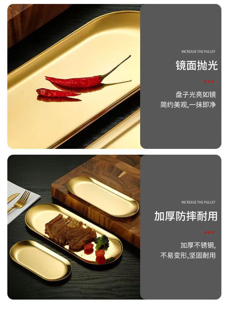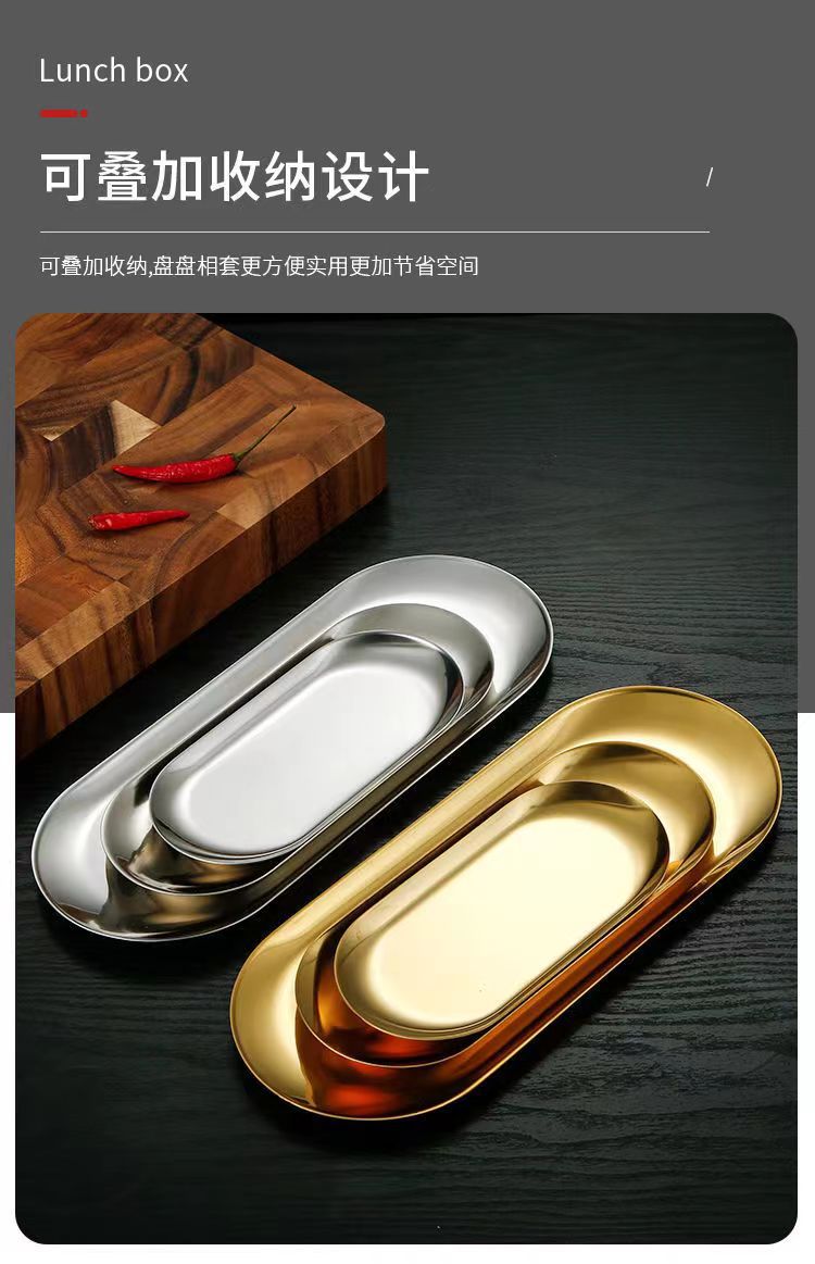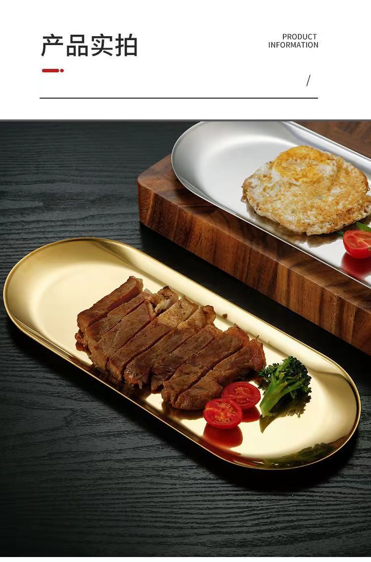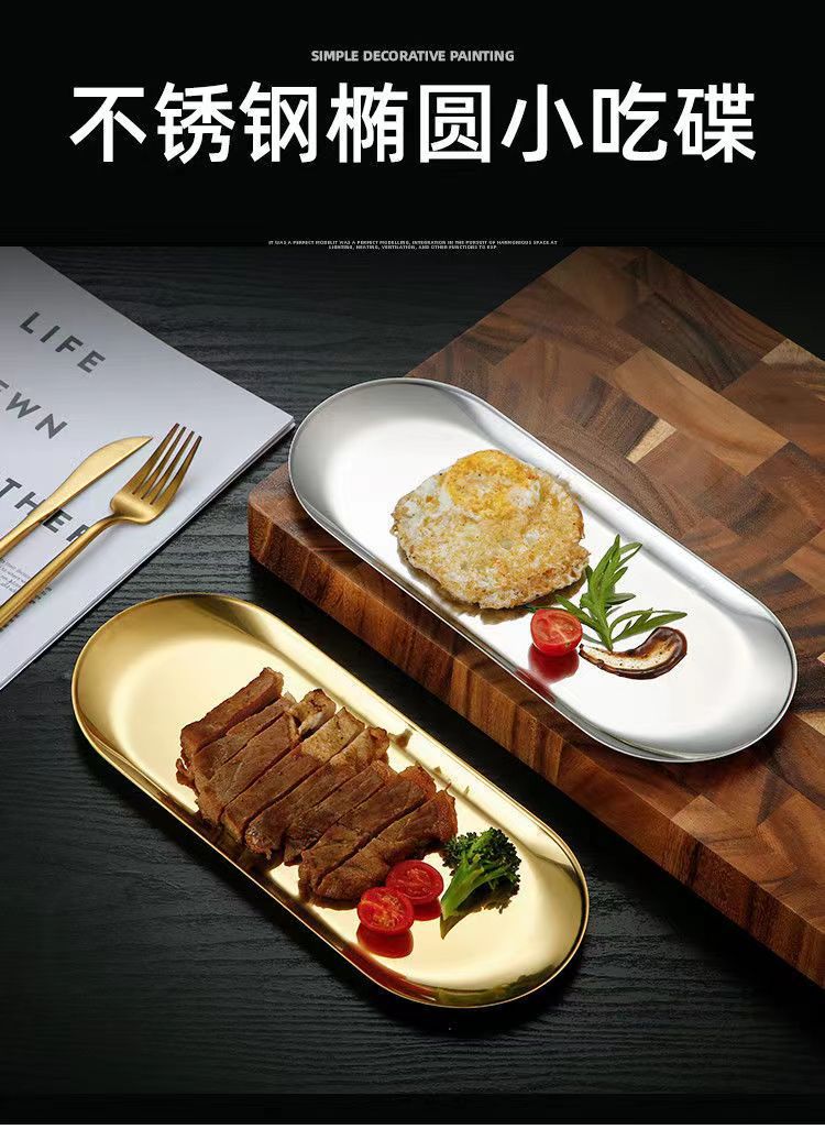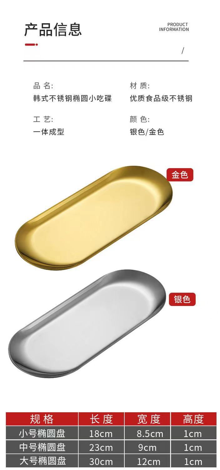 한국식 스테인레스 타원형 접시 호텔용품 디저트 스낵 플레이트 황금 냄비 반찬 크리에이티브 트레이 타월 플레이트