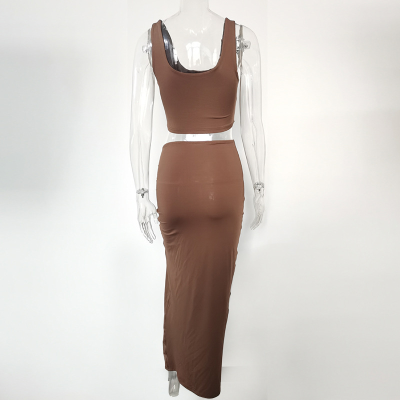 유럽과 미국의 패션 2023 여름 새로운 여성의 슬림 핏 배꼽 스트랩 탑 투피스 스플릿 섹시 세트 스커트스토어 가기