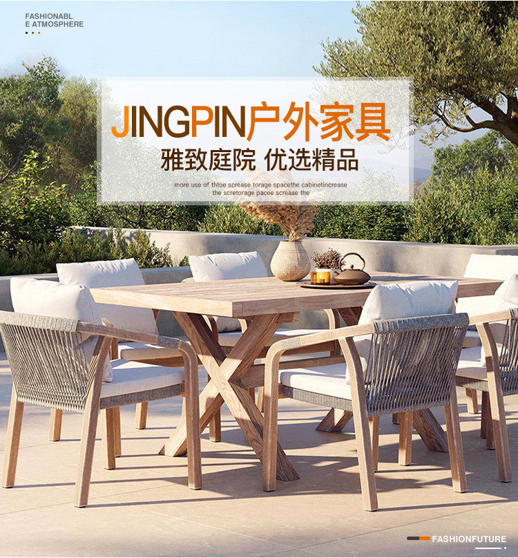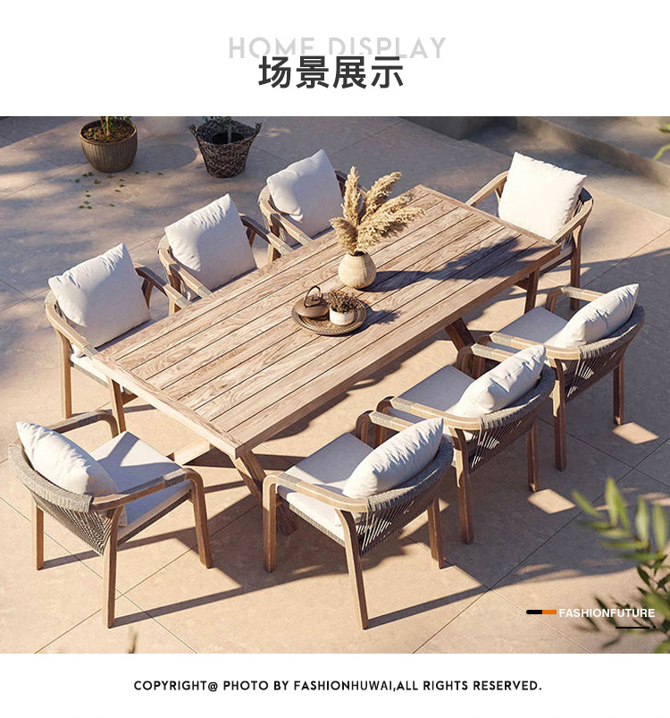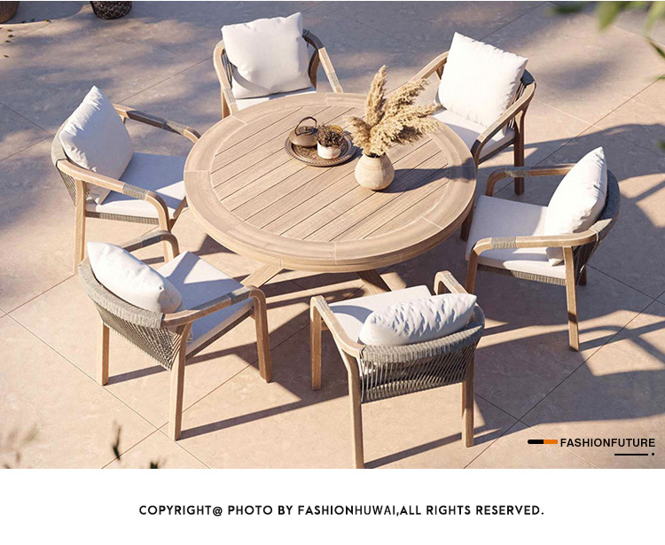 야외 안뜰 테이블과 의자 조합 티크 야외 빌라 가든 홈스테이 호텔 야외 단단한 나무 등나무 의자 자외선 차단제 방수