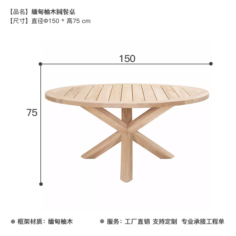 • 직경 150 미얀마 티크 라운드 식탁