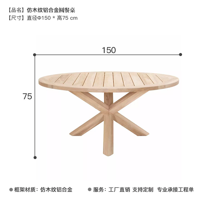 • 직경 150 모조 나무 곡물 알루미늄 합금 둥근 식탁