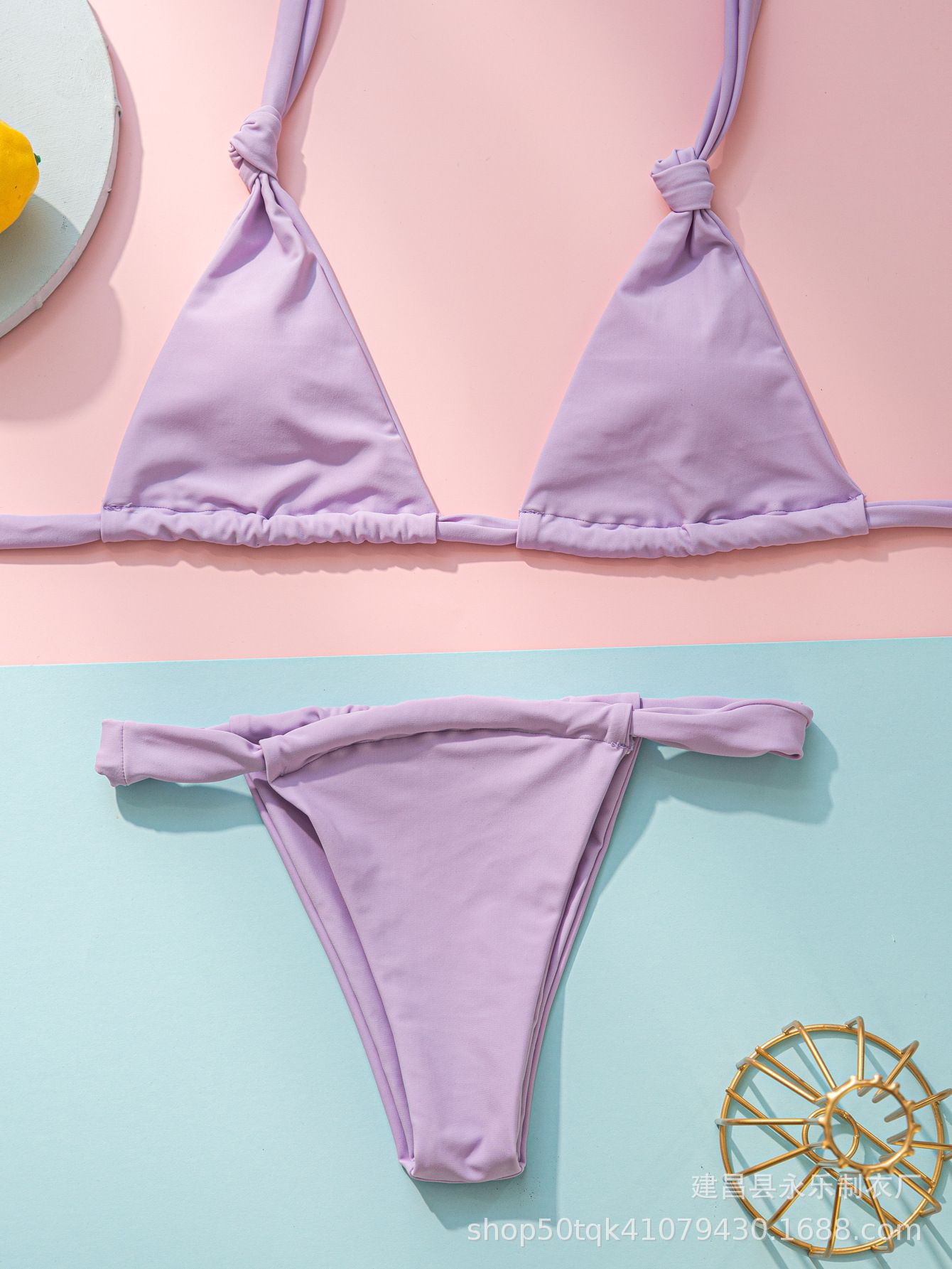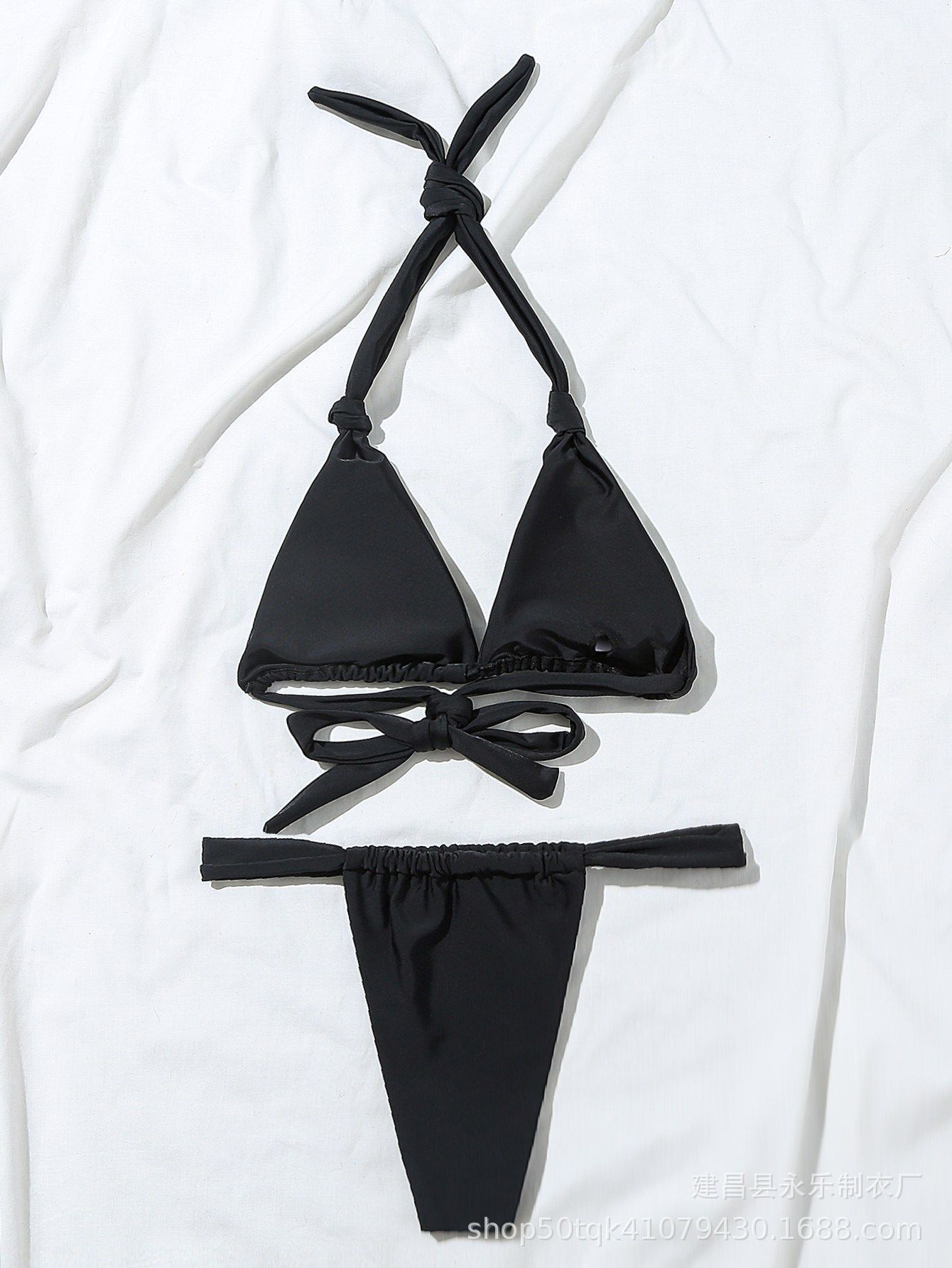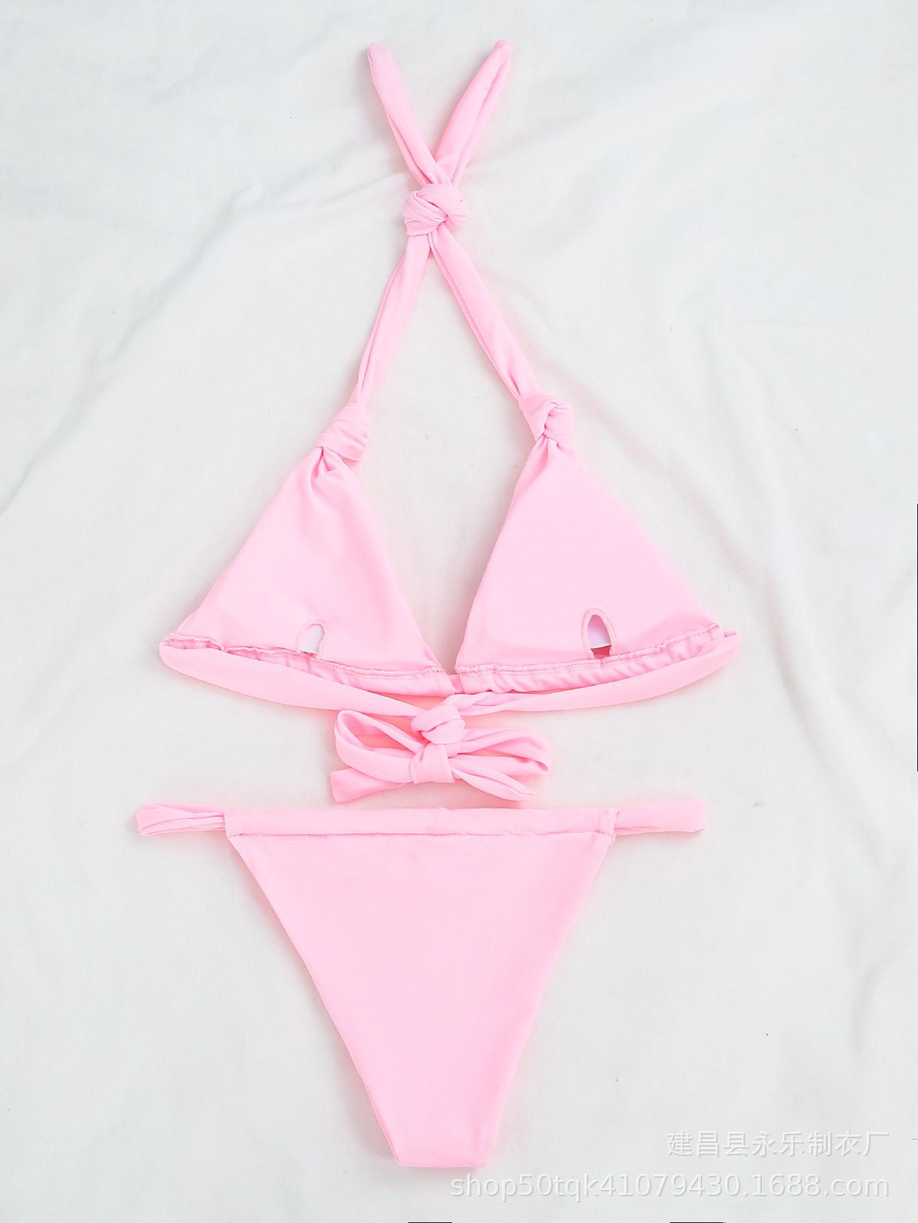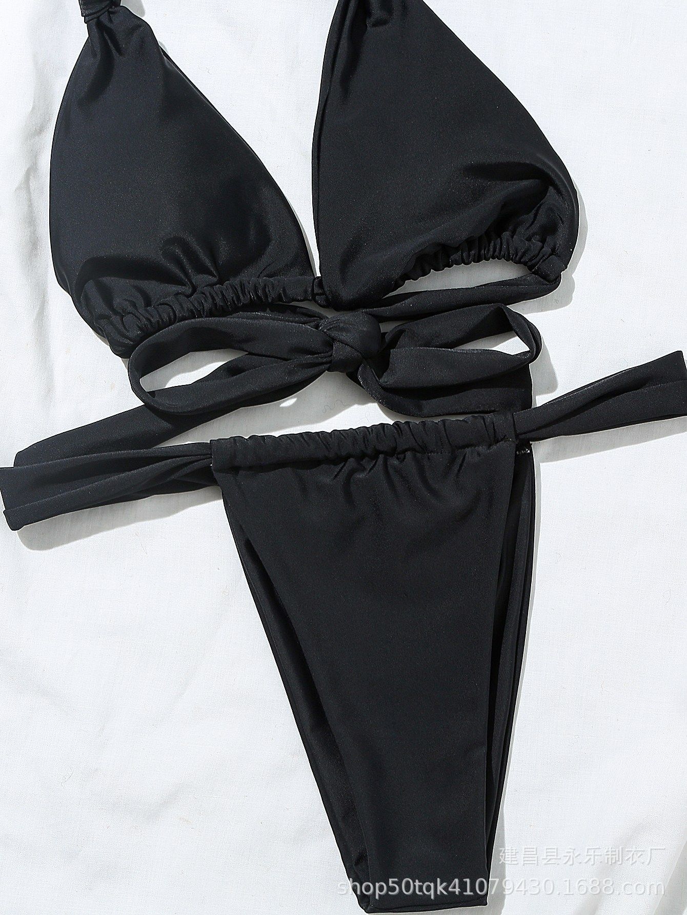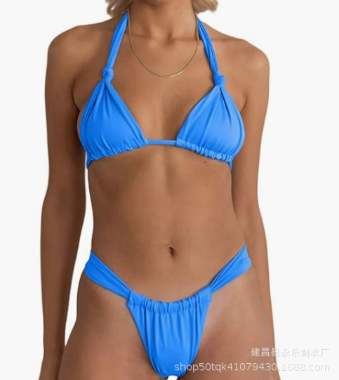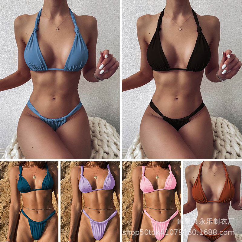 크로스 보더 2023 도매 유럽과 미국 비키니 주름 섹시 수영복 스플릿 스트랩 단색 매듭 수영복 비키니스토어 가기