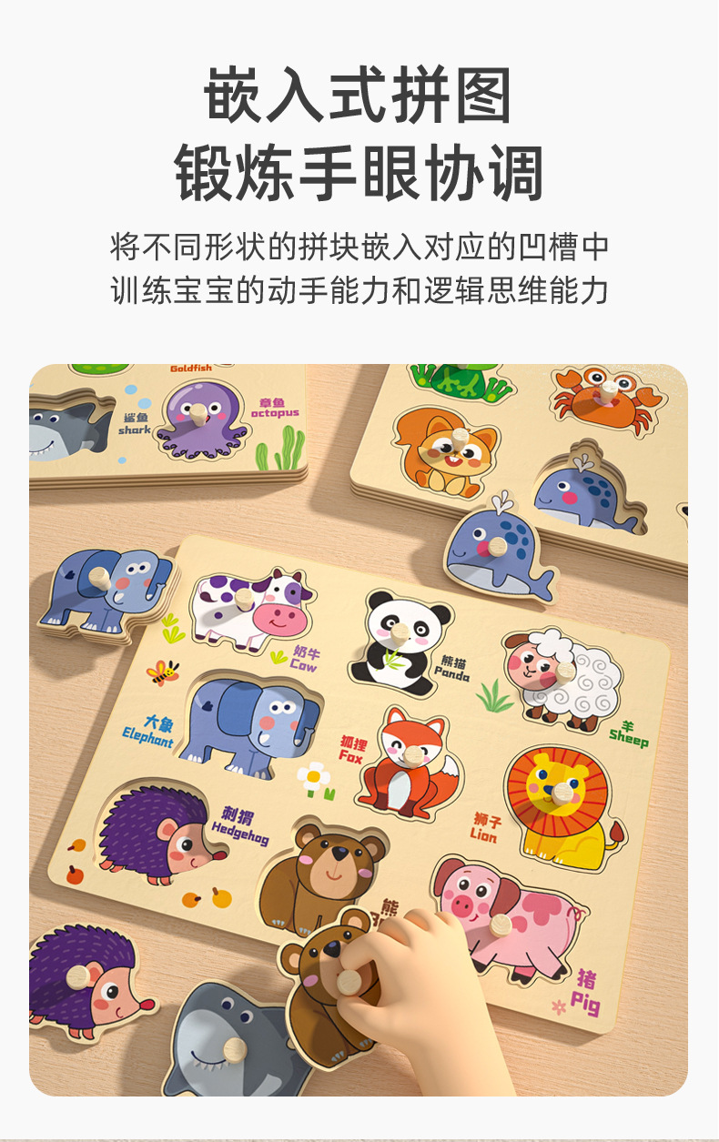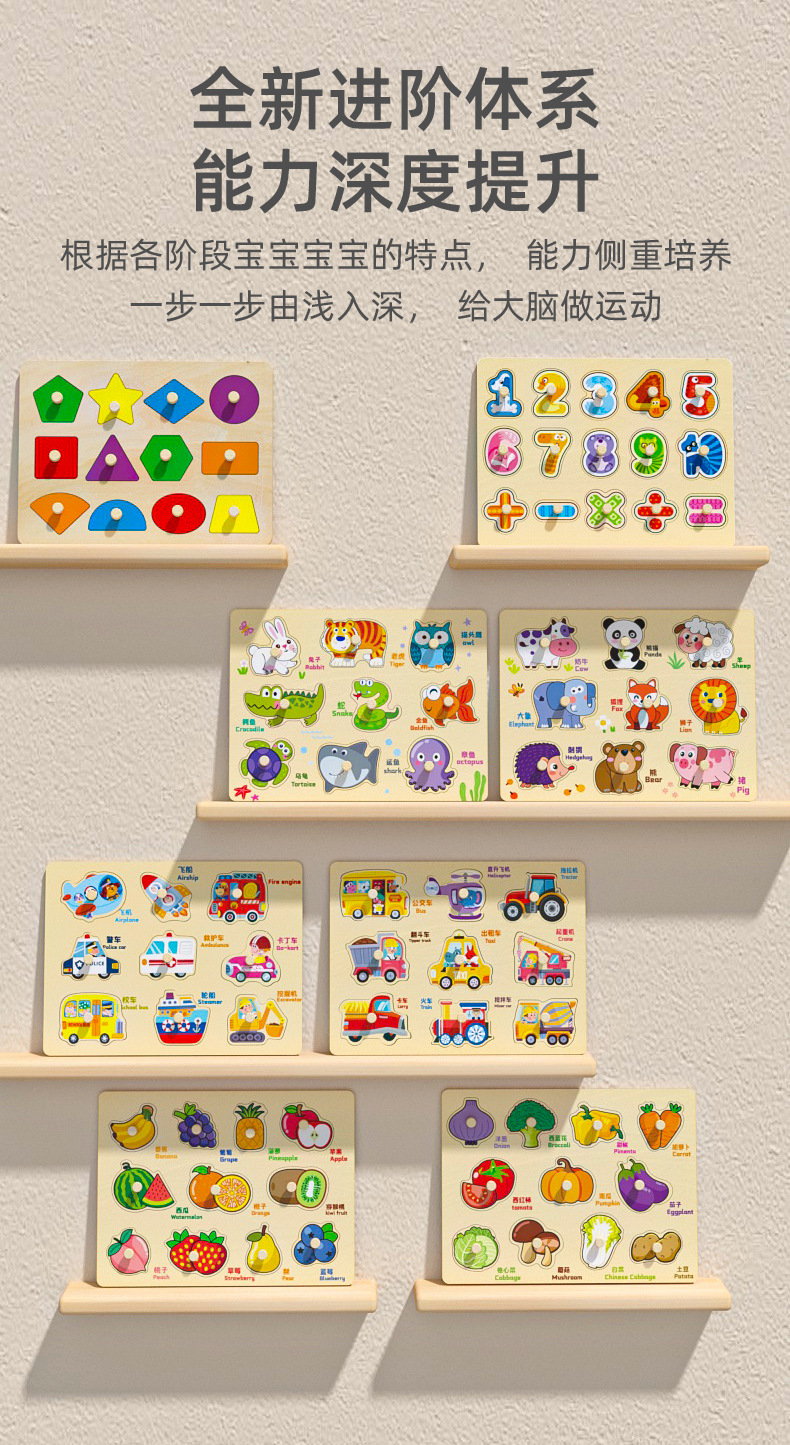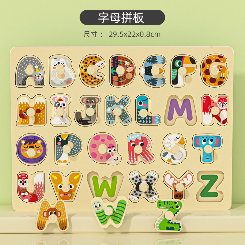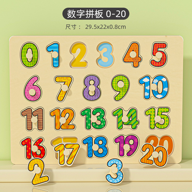어린이 나무 직소 퍼즐 버섯 손톱 손 잡는 보드 디지털 알파벳 매칭 보드 1-3 세 아기 교육 완구스토어 가기