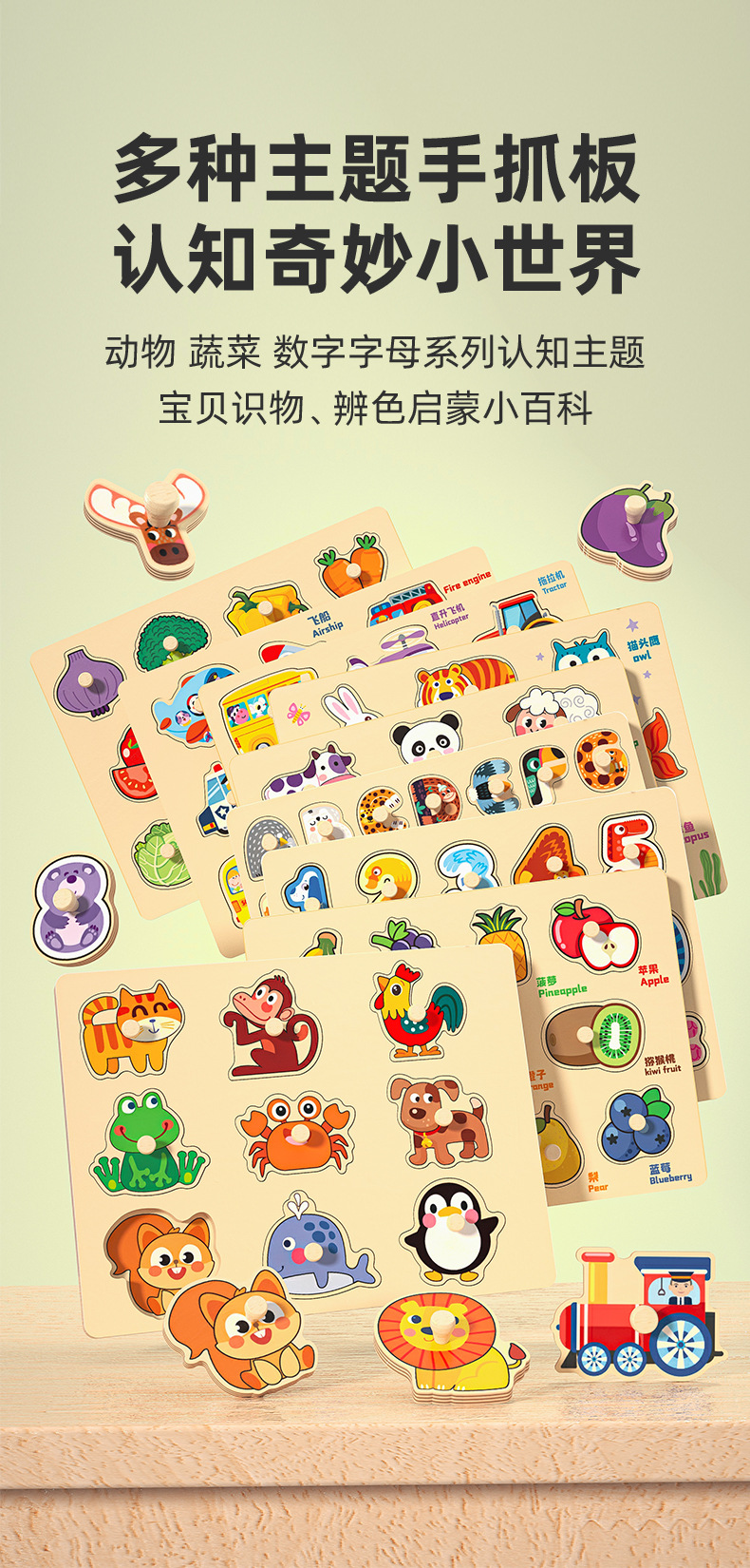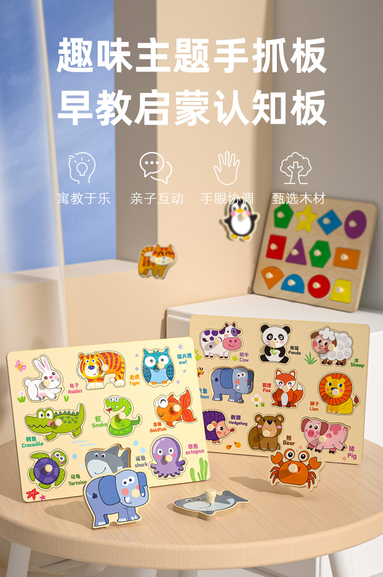 • 9피스 손잡이 보드(고양이, 원숭이, 닭)