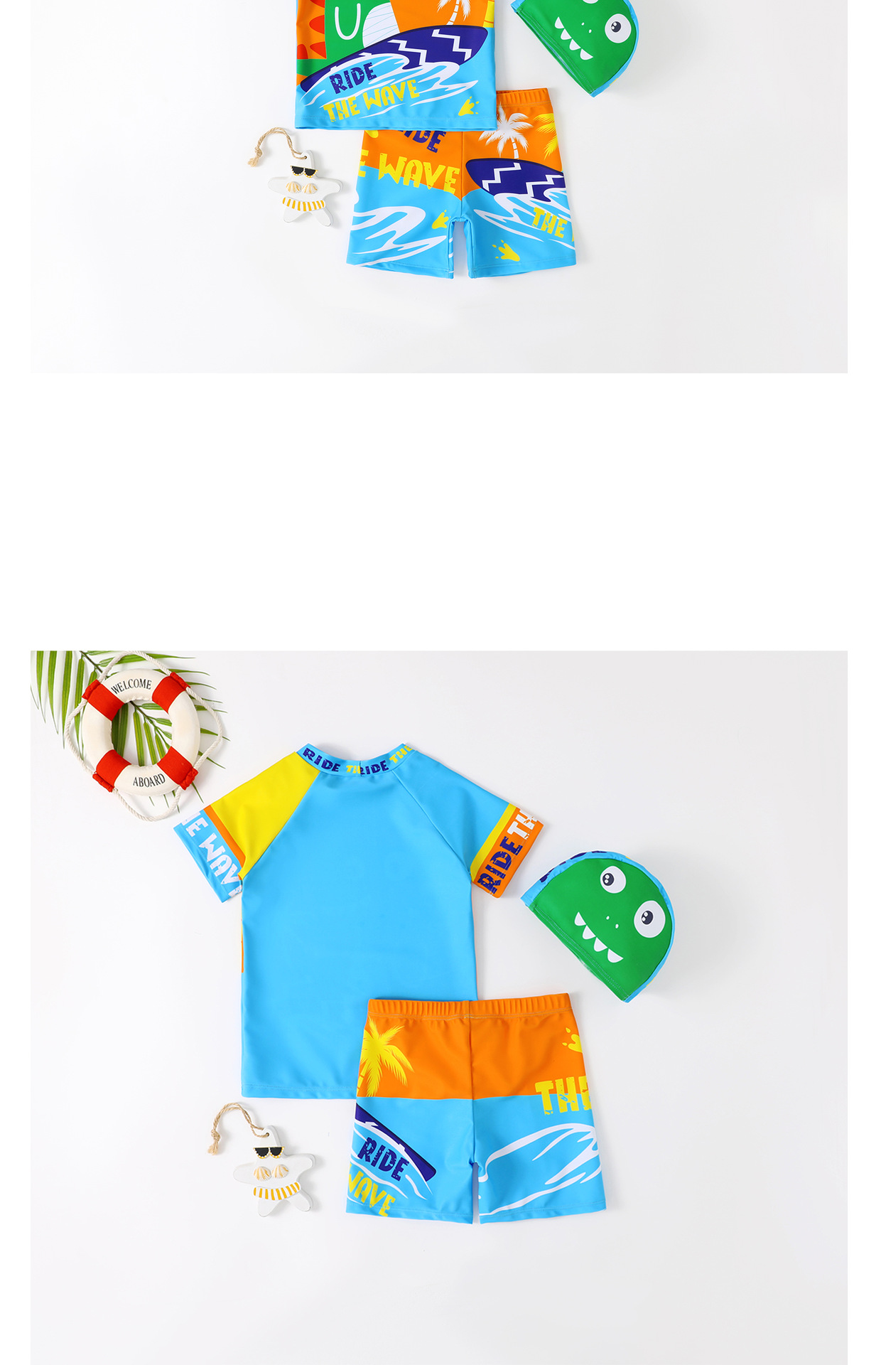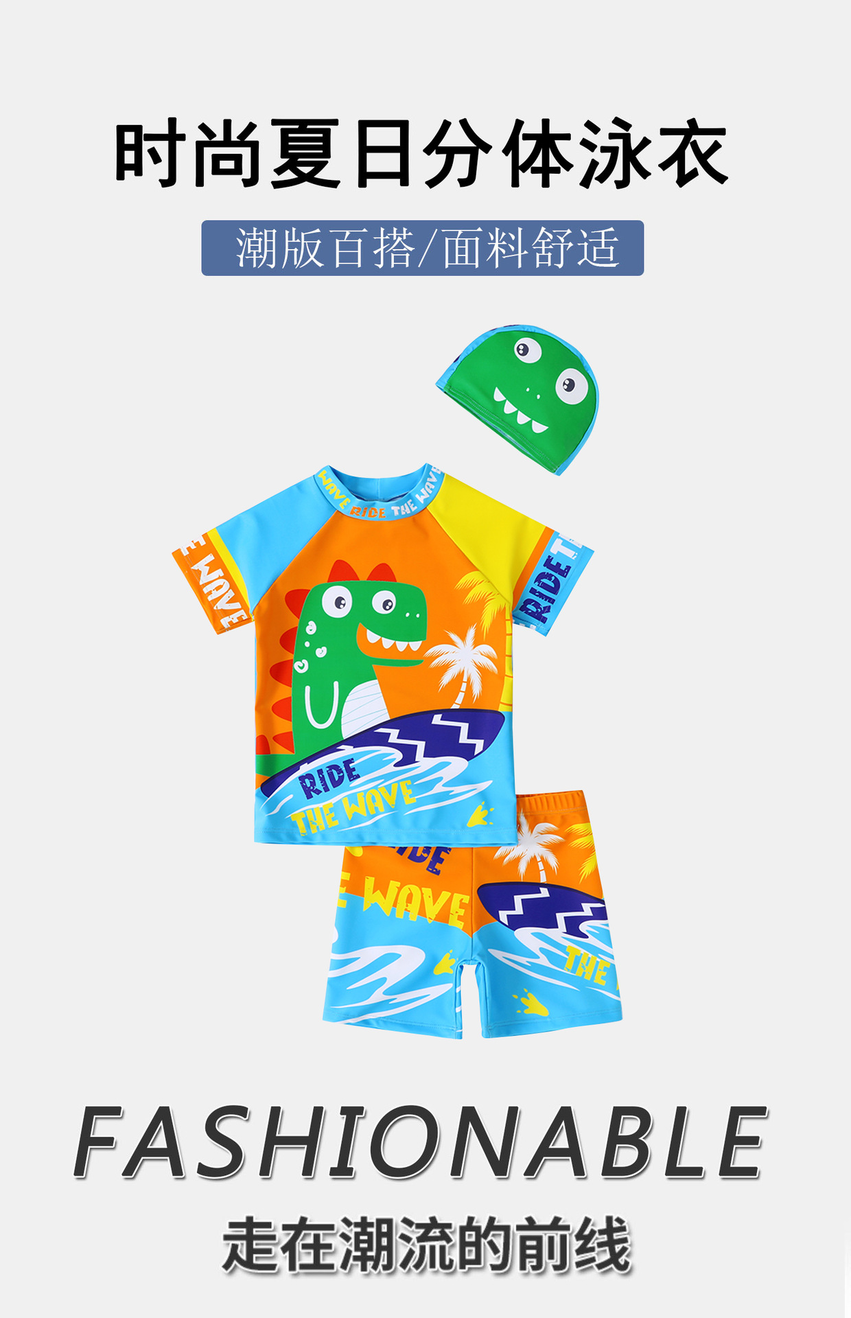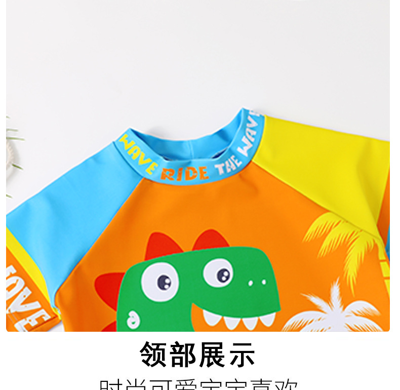 어린이 수영복 소년 귀여운 공룡 분할 짧은 소매 태양 보호 속건 반바지 수영복 세트