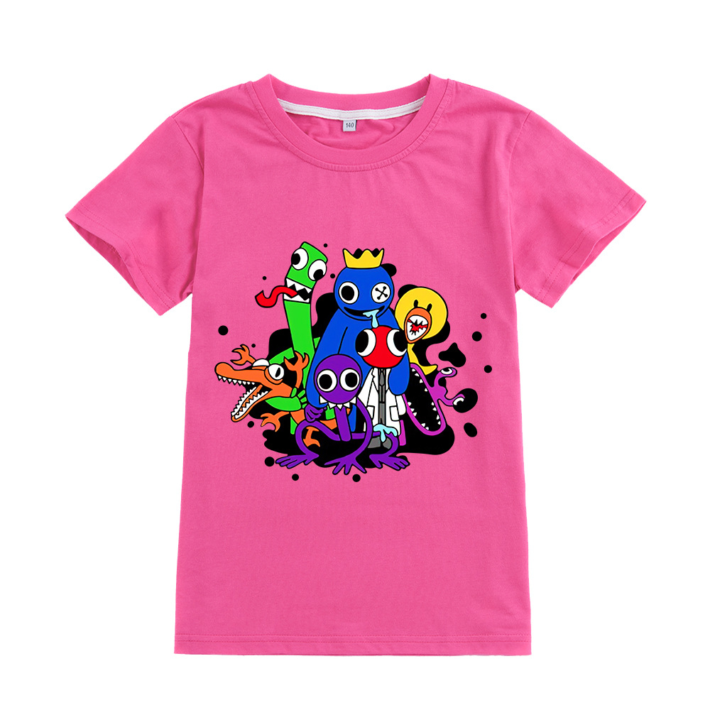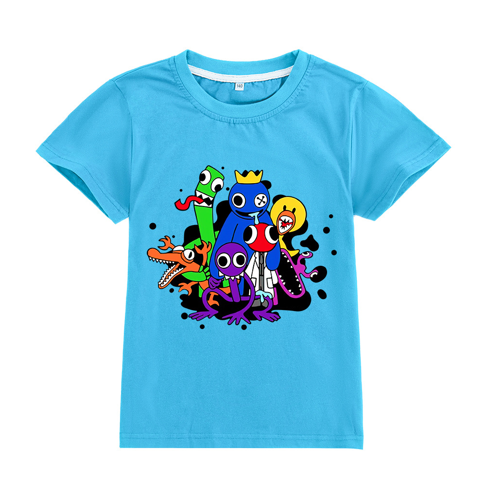 크로스 국경 키즈 뜨거운 판매 만화 무지개 친구 짧은 소매 소년 면 티셔츠 키즈 탑 A399