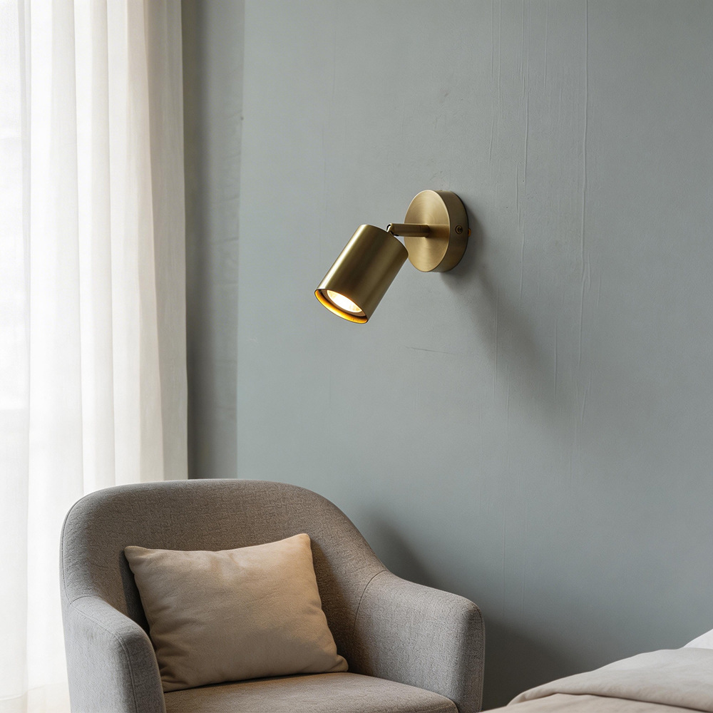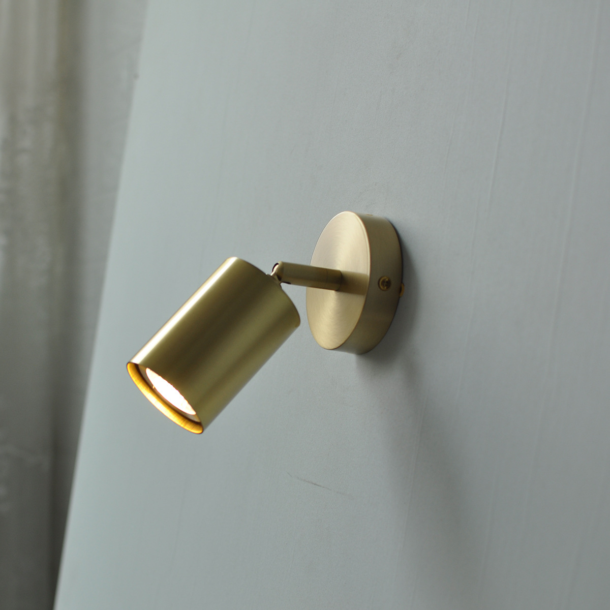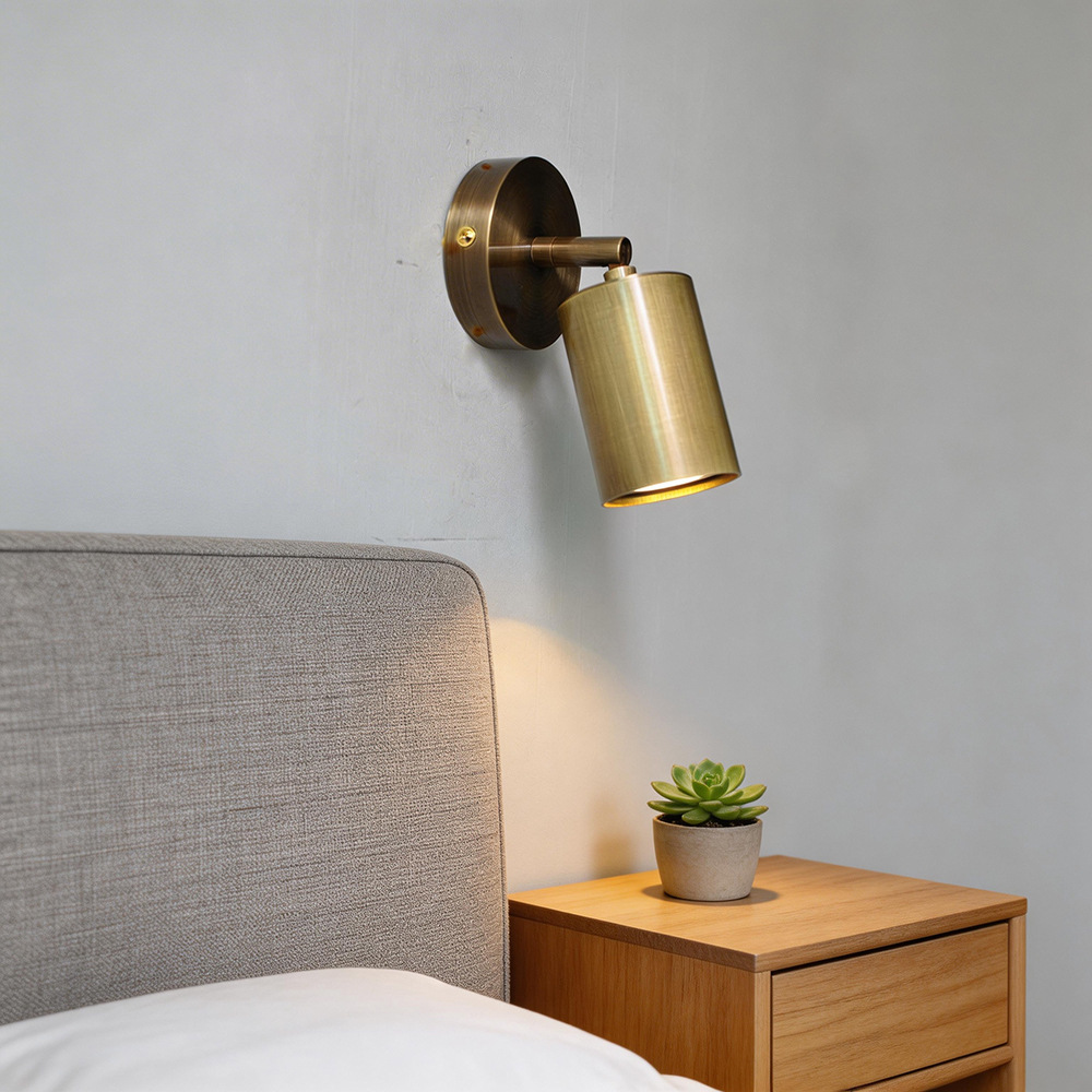 모든 구리 벽 램프 마스터 침실 침대 옆 황동 순수 구리 간단 미니 회전 각도 조절 로커 벽 램프 소형 램프