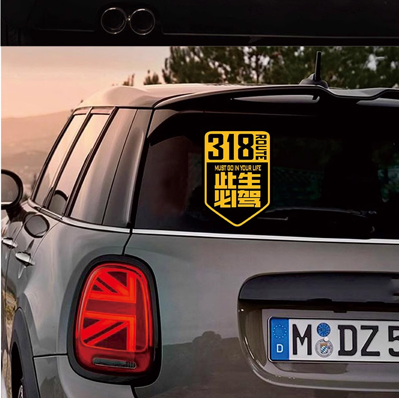 이 삶은 운전할 것입니다 스틱 국도 G318 라인 반사 스티커 자동 운전 여행 창조적 인 텍스트 스크래치 자동차 장식을 차단