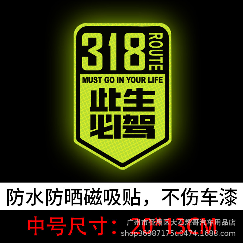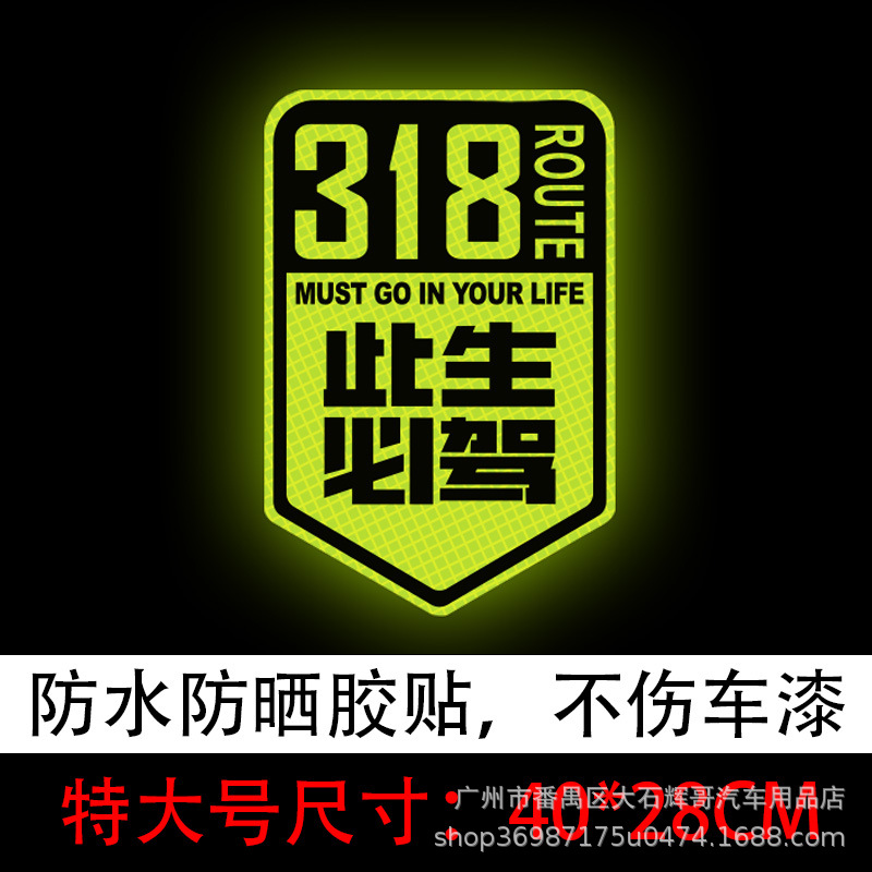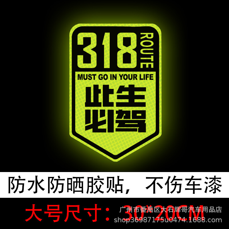 이 삶은 운전할 것입니다 스틱 국도 G318 라인 반사 스티커 자동 운전 여행 창조적 인 텍스트 스크래치 자동차 장식을 차단스토어 가기