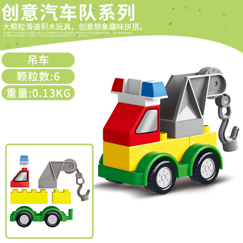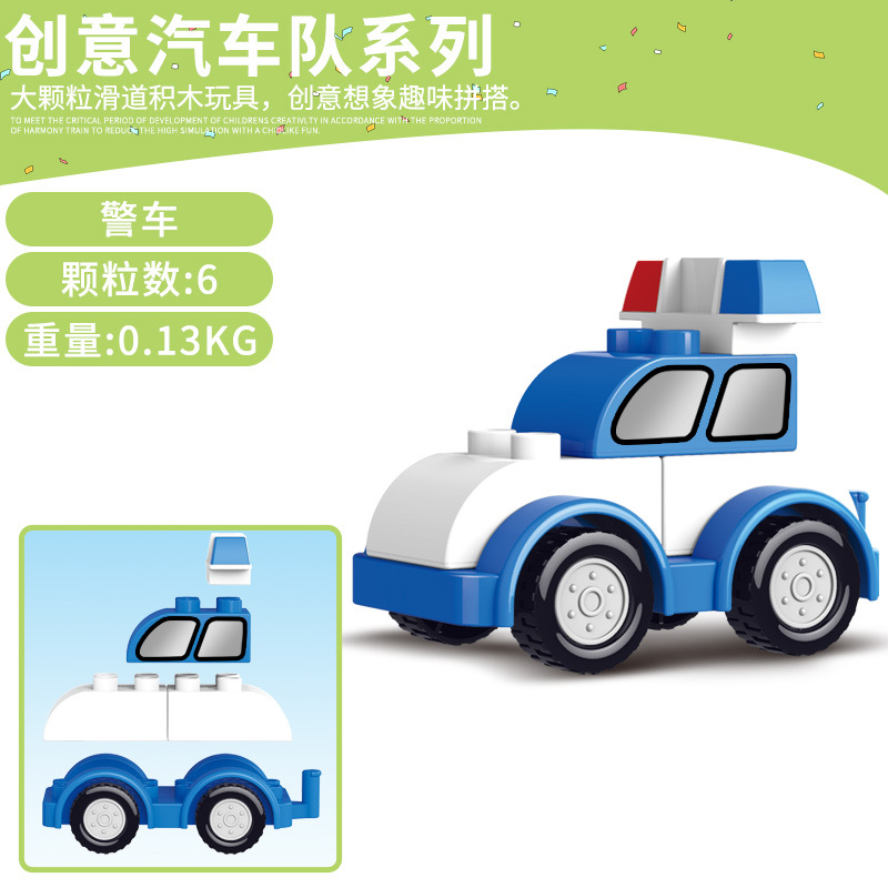 万格101快乐车队大颗粒积木拼装玩具儿童益智diy积木拼插警车玩具 RMB:11.85