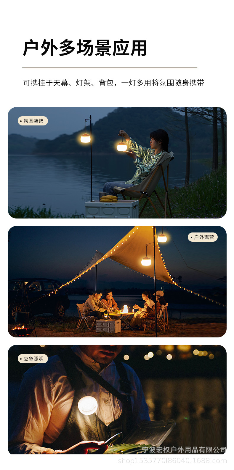 쿠앙투 캠핑 조명 LED 텐트 램프 충전식 야외 캠프 장시간 지속 조명 조절 가능한 램프