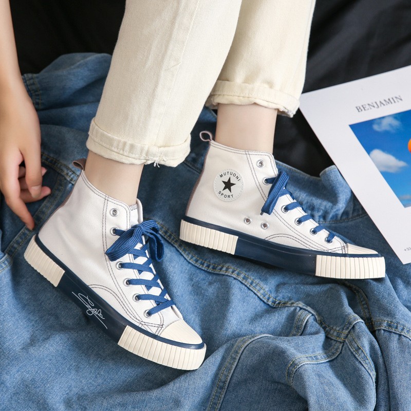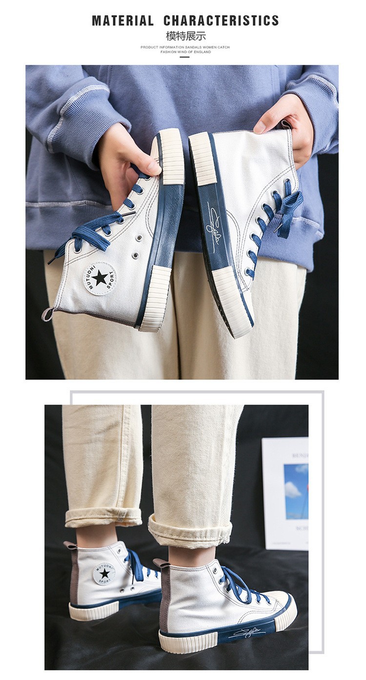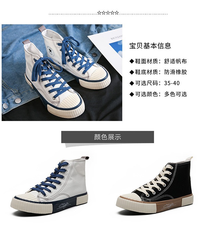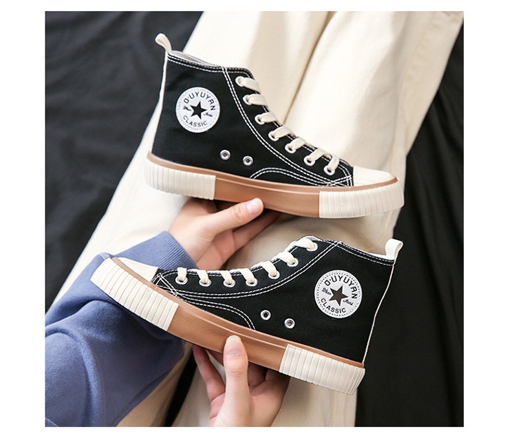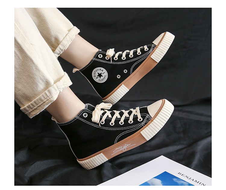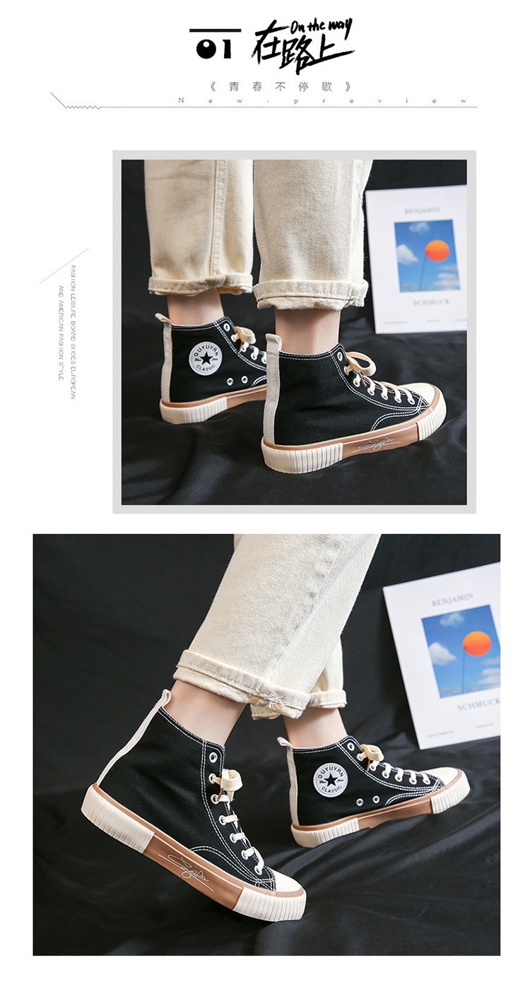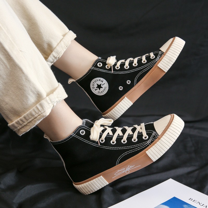 가을 하이탑 캔버스화 여성용 이중 가황 처리된 한국 스타일 고무신 학생 운동화 인스타그램 스트릿 패션 인기 신발 G58