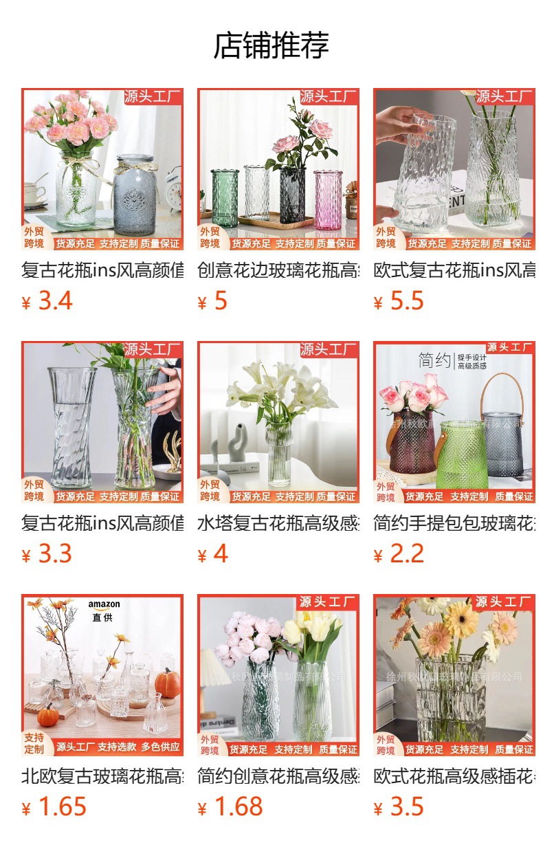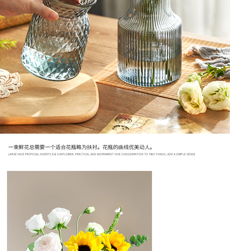 유럽풍 창의적이고 심플한 유리 꽃병, 고급스러운 장미 호텔 및 민박 장식품, 꽃 공예품 수제스토어 가기