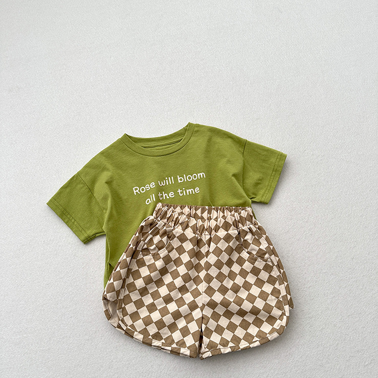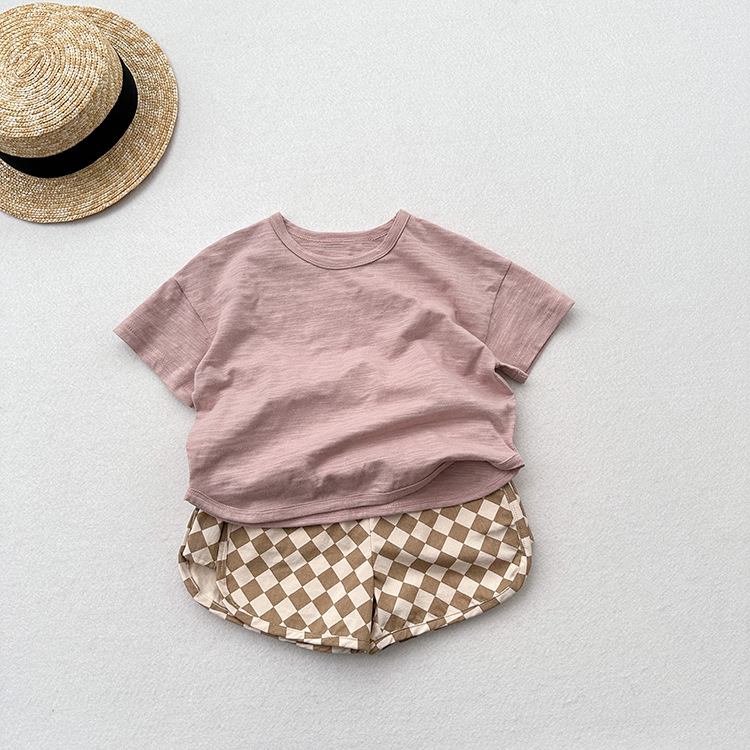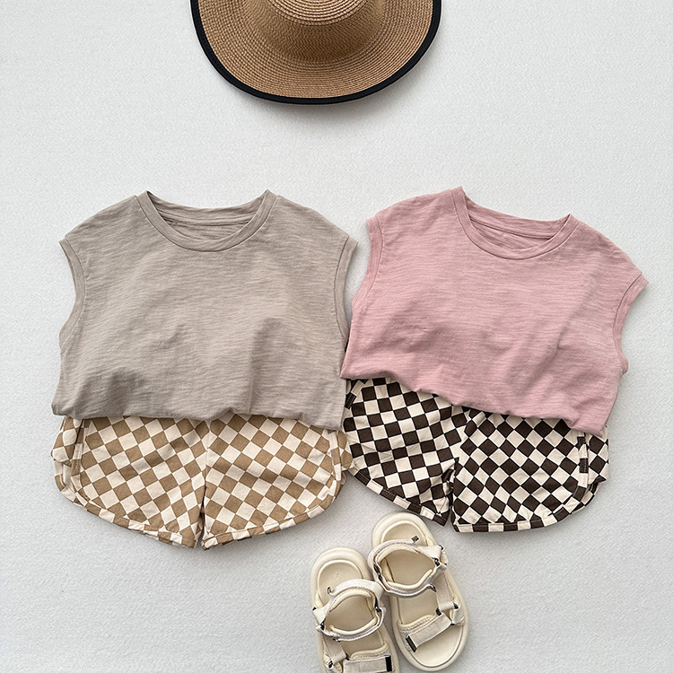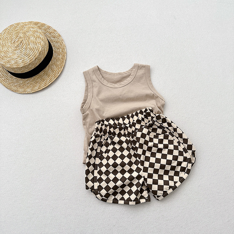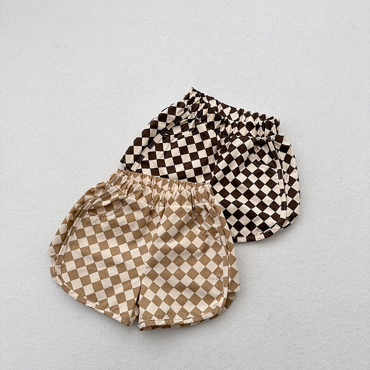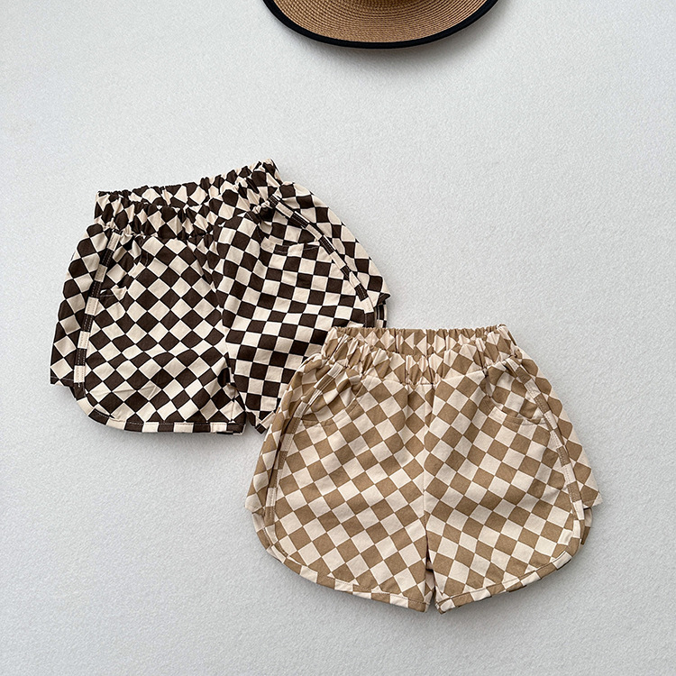 기하학적 문학 스타일 ~ 여름 새 아기 소년과 소녀를위한 격자 무늬 작은 핫 팬츠 한국식 작은 마름모 반바지 비치 바지
