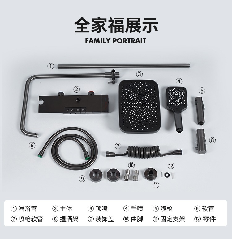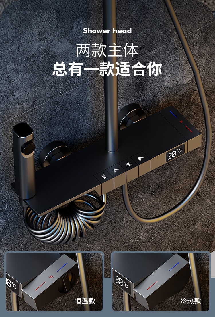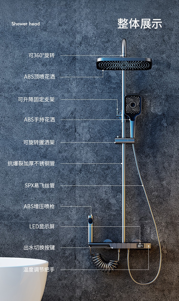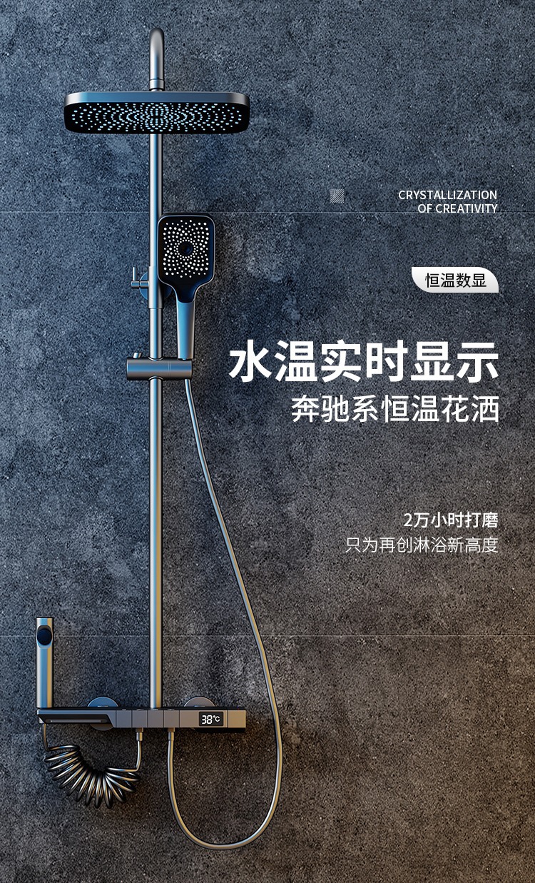샤워 세트 모든 구리 과급 브러시 총 회색 지능형 디지털 디스플레이 항온 샤워 헤드 현대 간단한 혼합 밸브 샤워