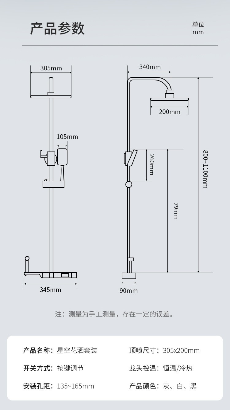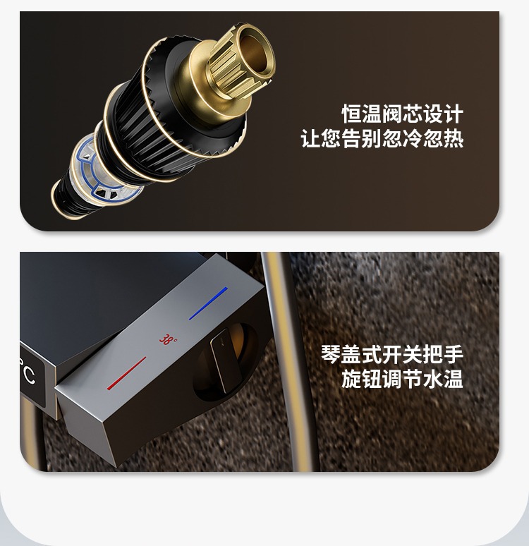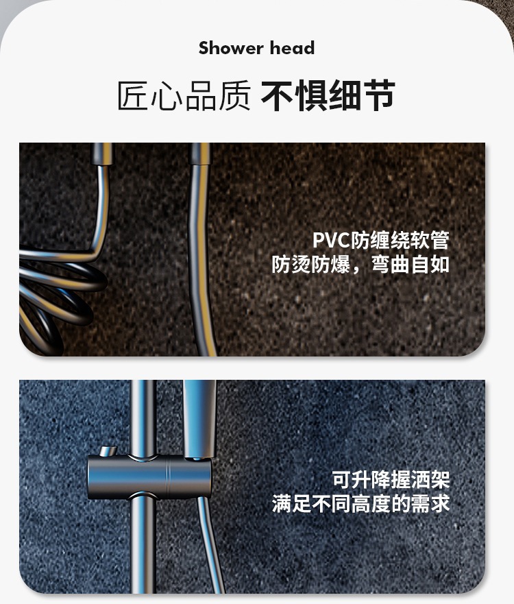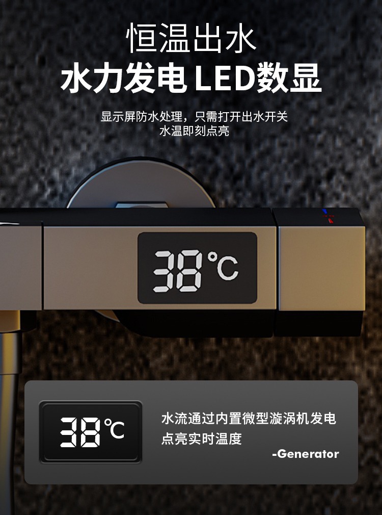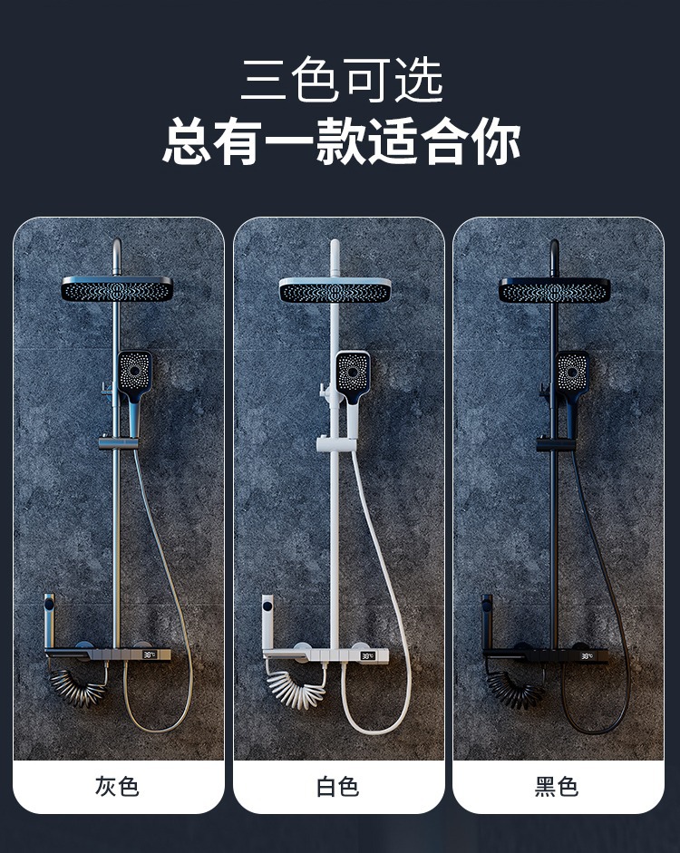 샤워 세트 모든 구리 과급 브러시 총 회색 지능형 디지털 디스플레이 항온 샤워 헤드 현대 간단한 혼합 밸브 샤워