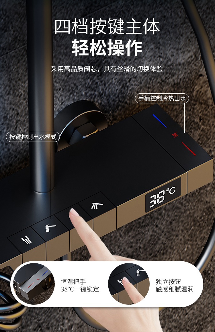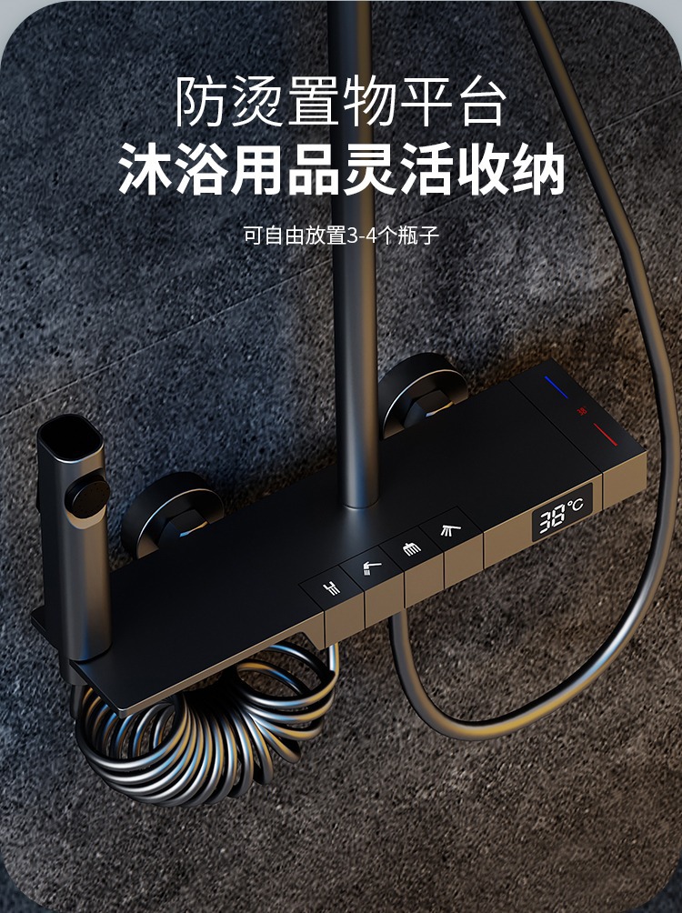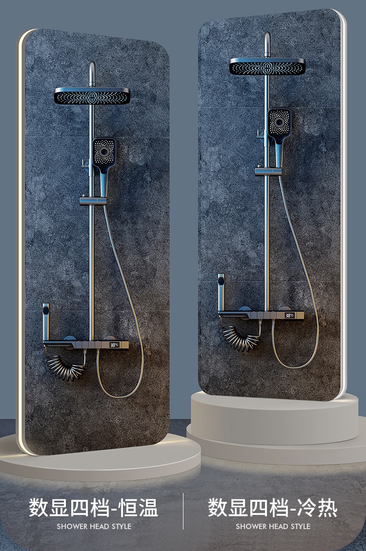 샤워 세트 모든 구리 과급 브러시 총 회색 지능형 디지털 디스플레이 항온 샤워 헤드 현대 간단한 혼합 밸브 샤워스토어 가기