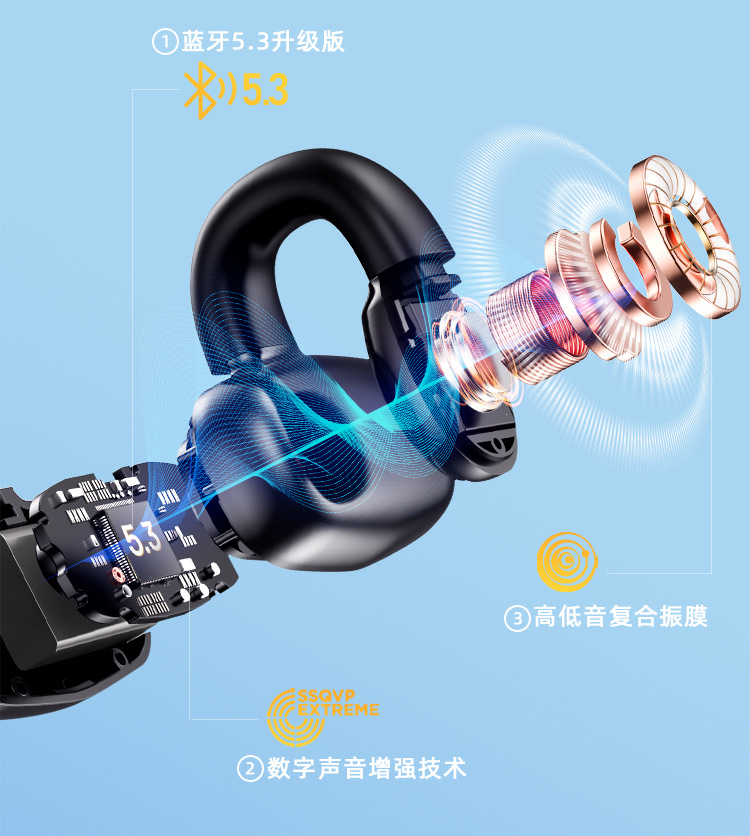이어 클립 V90 블루투스 헤드셋이 귀에 맞지 않습니다. 스포츠 달리기 방수 땀 방지 슈퍼 롱 대기 미니