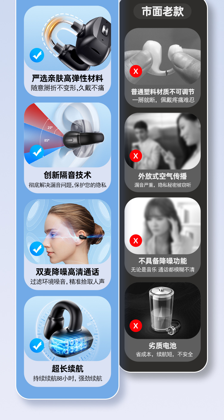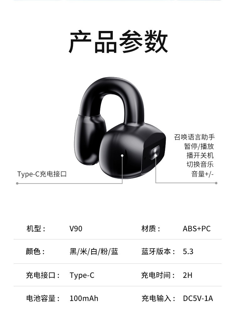 이어 클립 V90 블루투스 헤드셋이 귀에 맞지 않습니다. 스포츠 달리기 방수 땀 방지 슈퍼 롱 대기 미니스토어 가기
