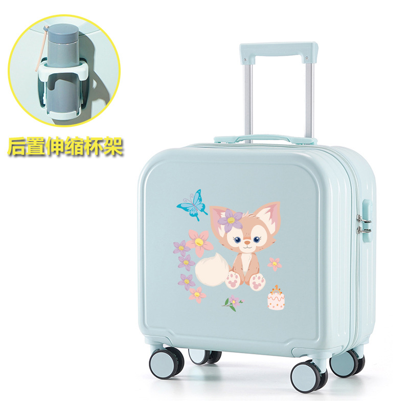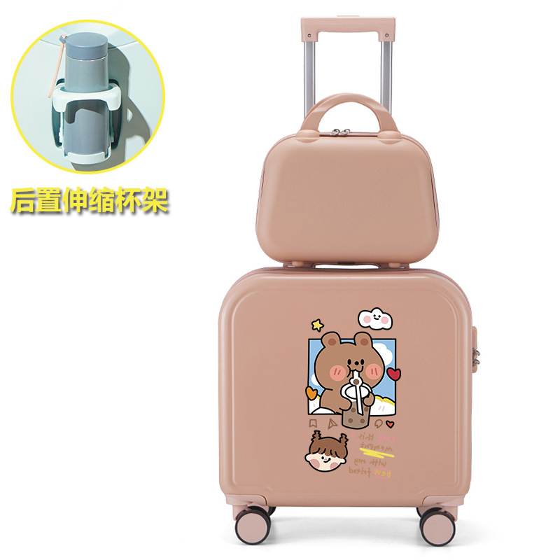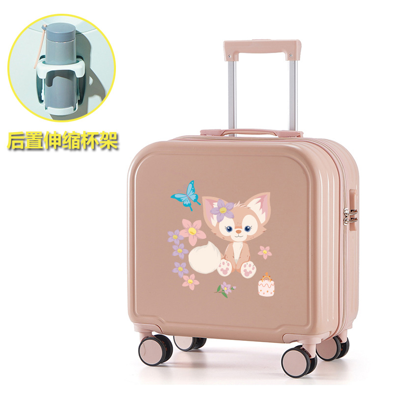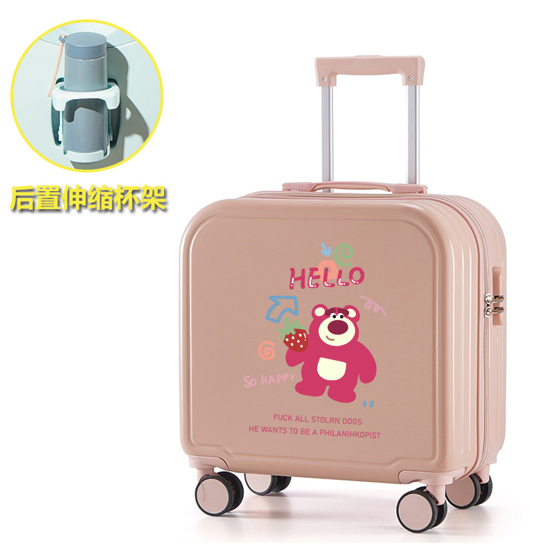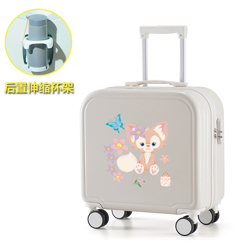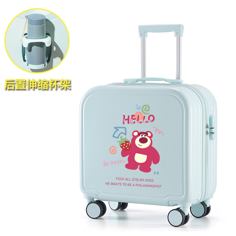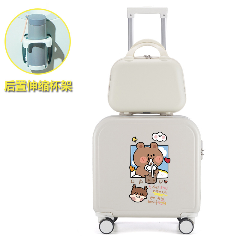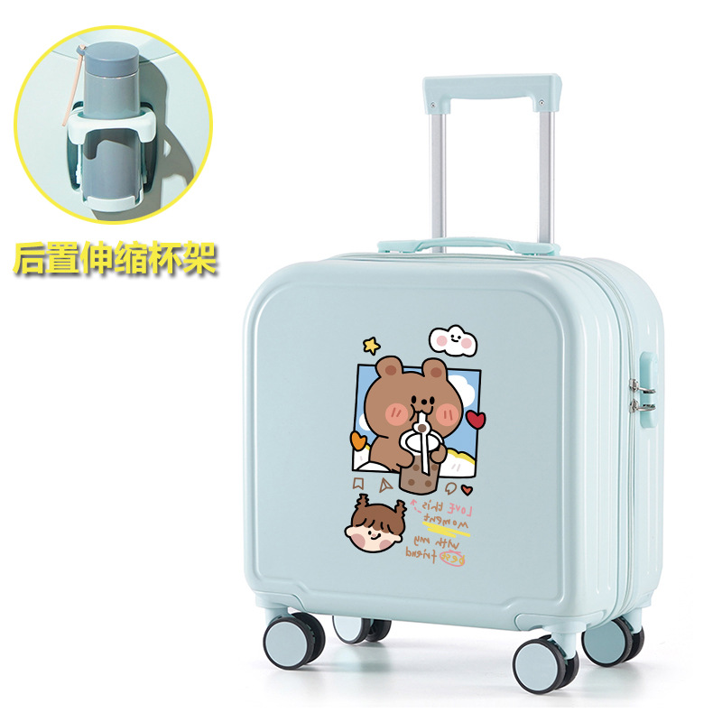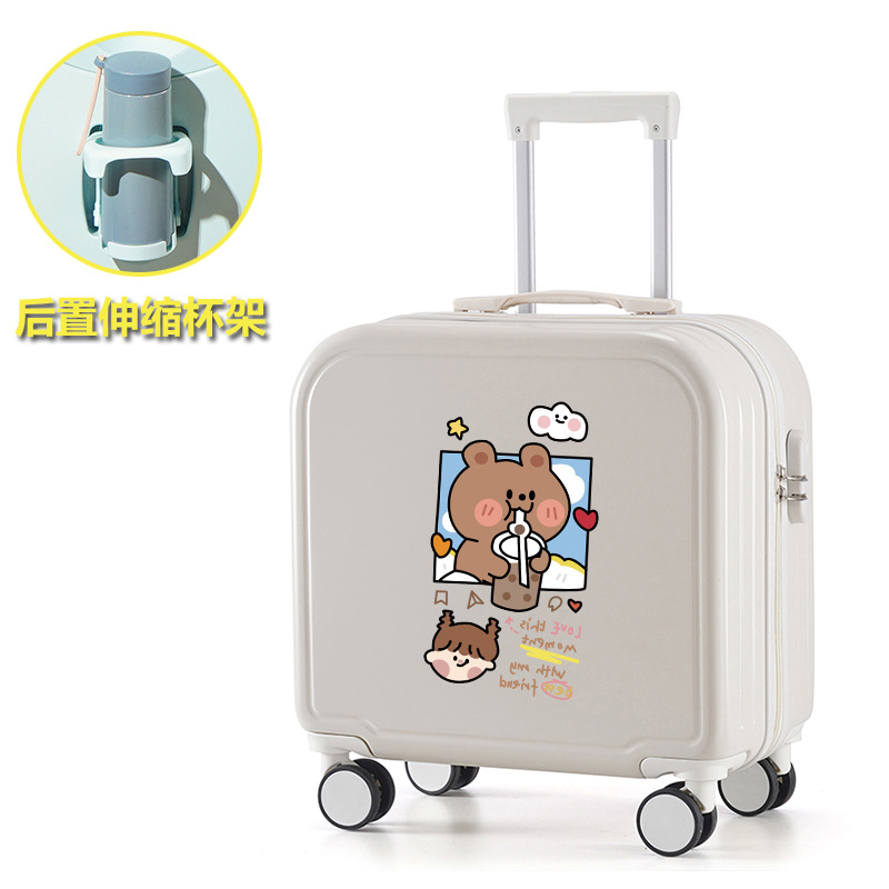 컵 홀더가 인쇄 된 학생 여행 암호 상자가있는 새로운 귀여운 만화 수하물 18 인치 보딩 트롤리 케이스