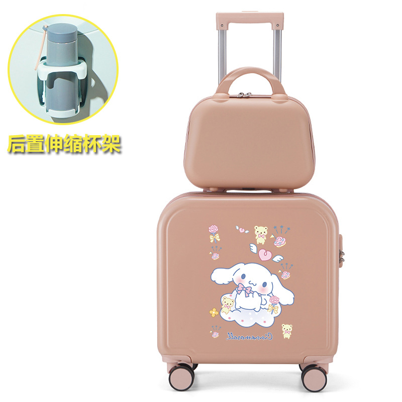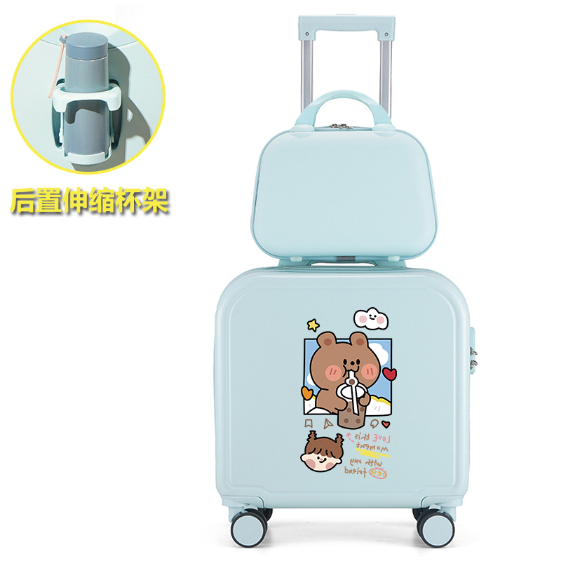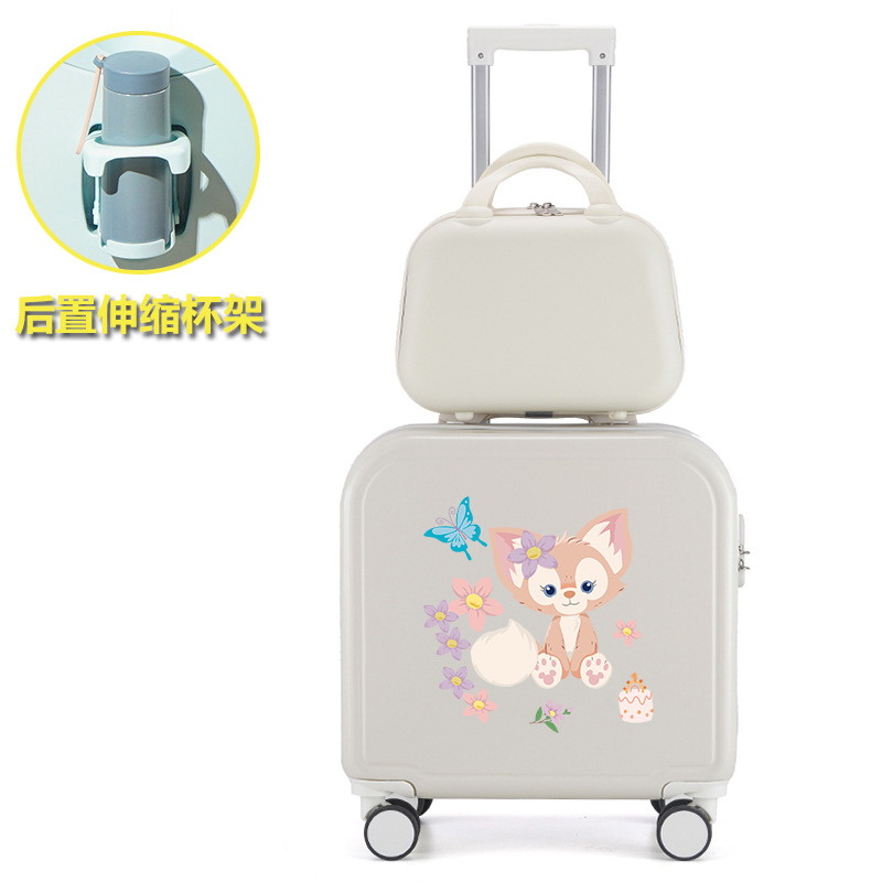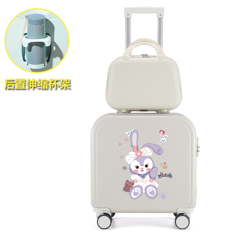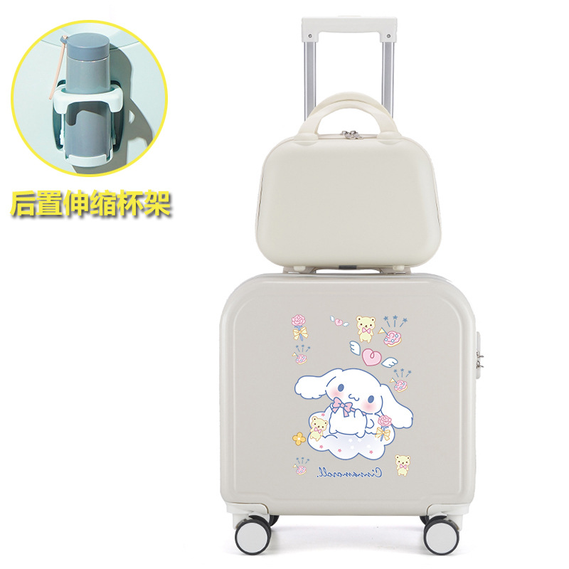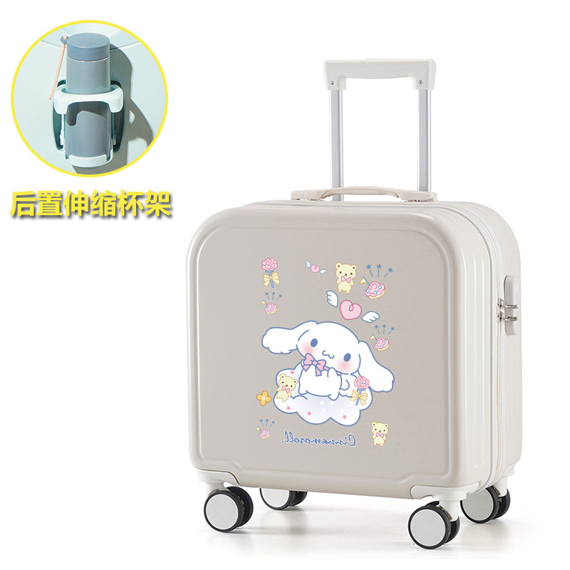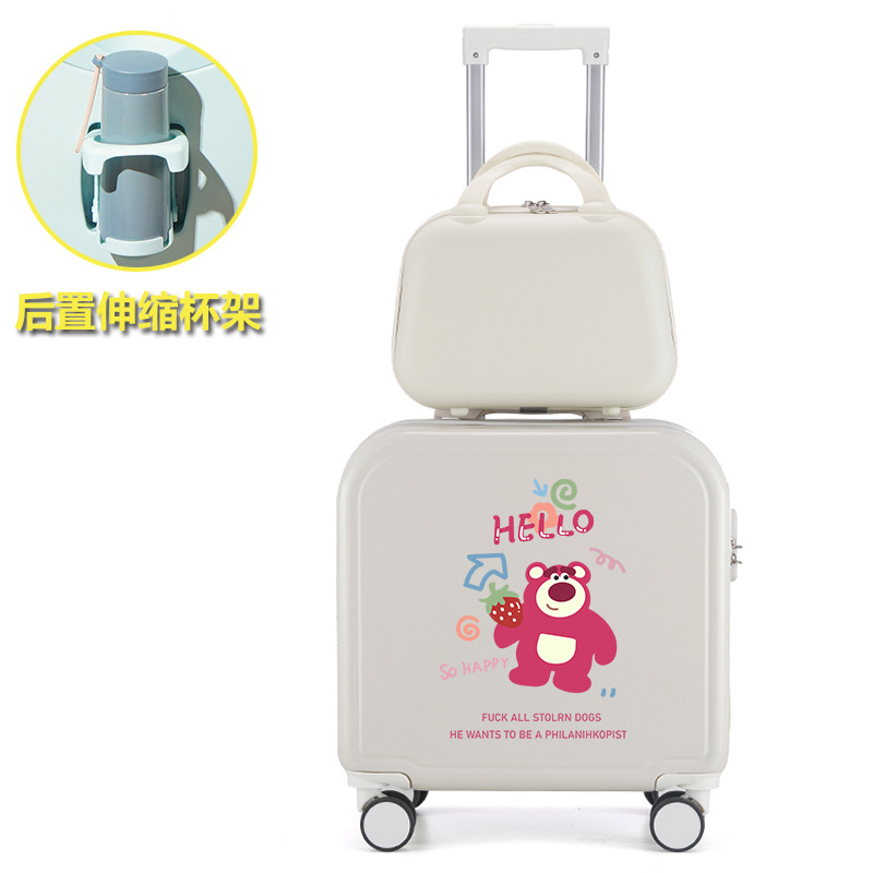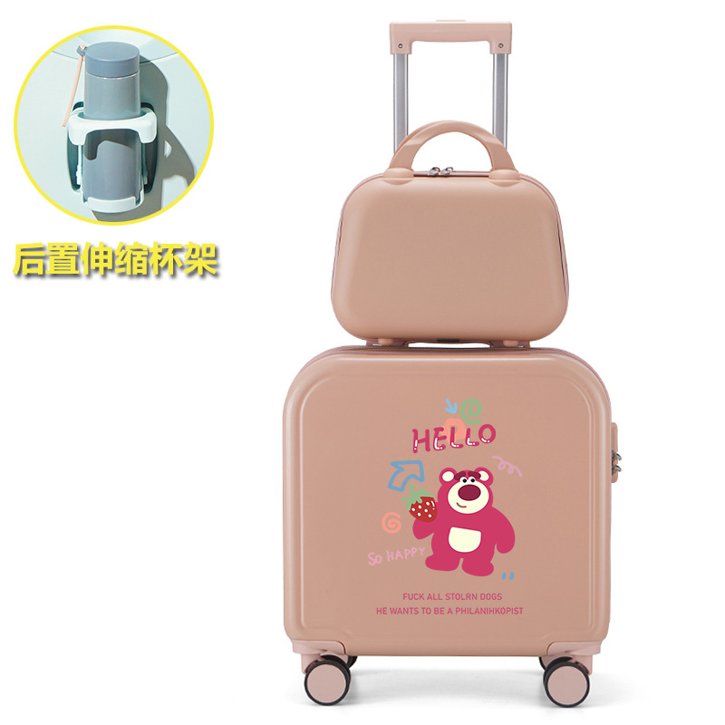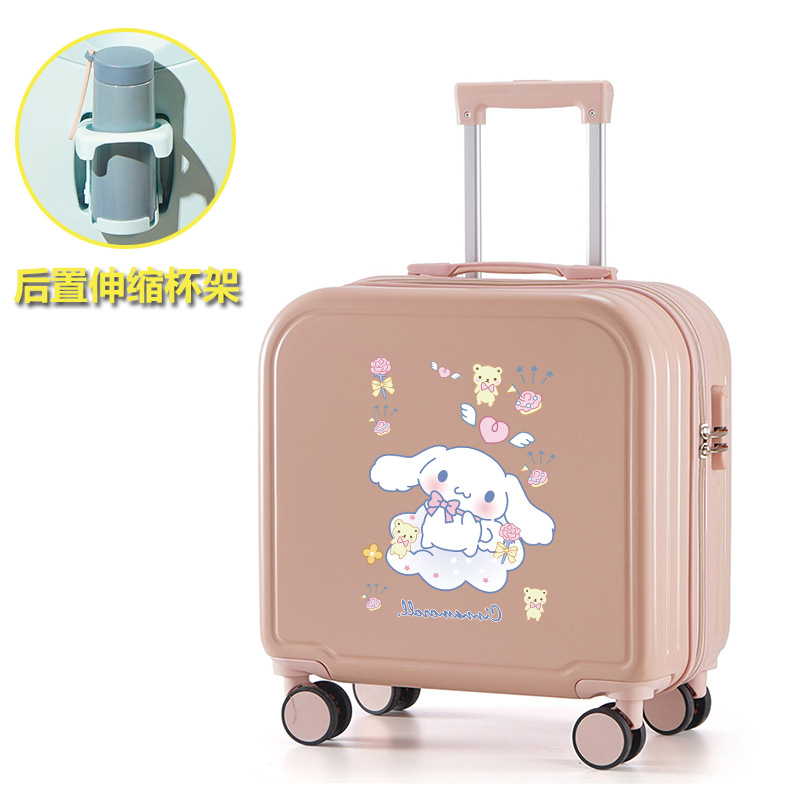 컵 홀더가 인쇄 된 학생 여행 암호 상자가있는 새로운 귀여운 만화 수하물 18 인치 보딩 트롤리 케이스
