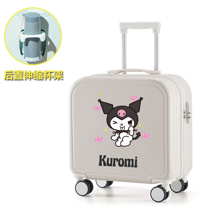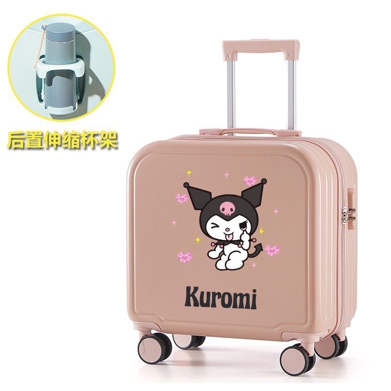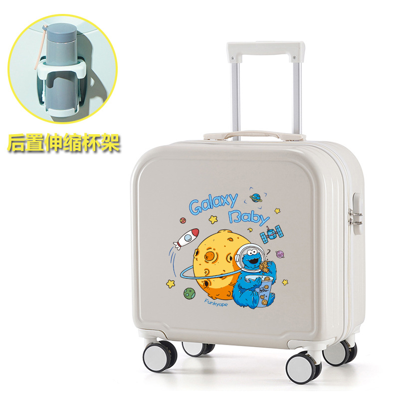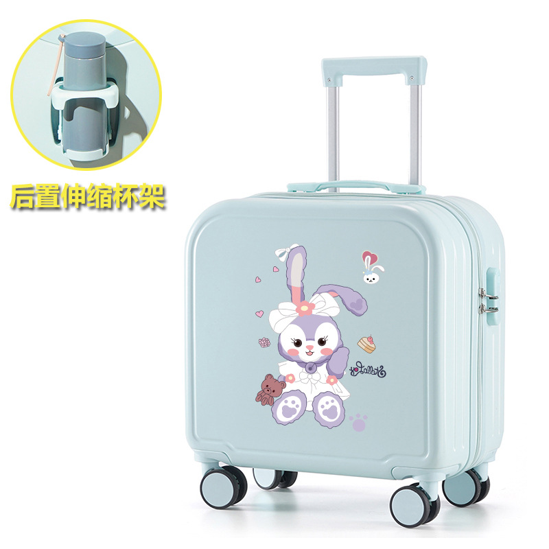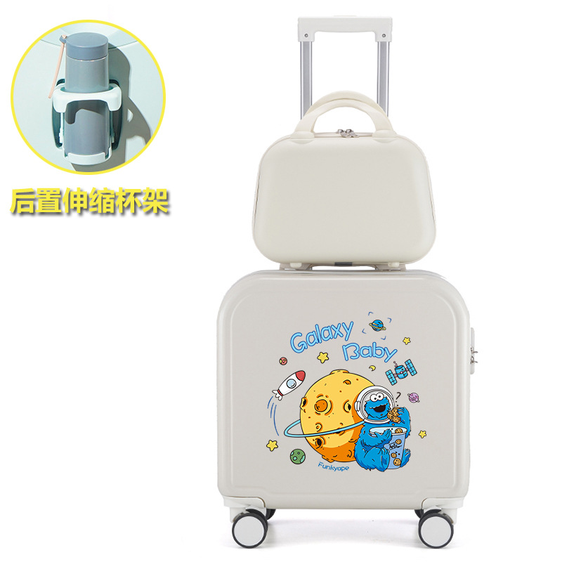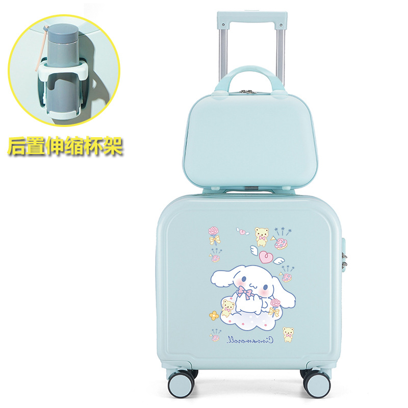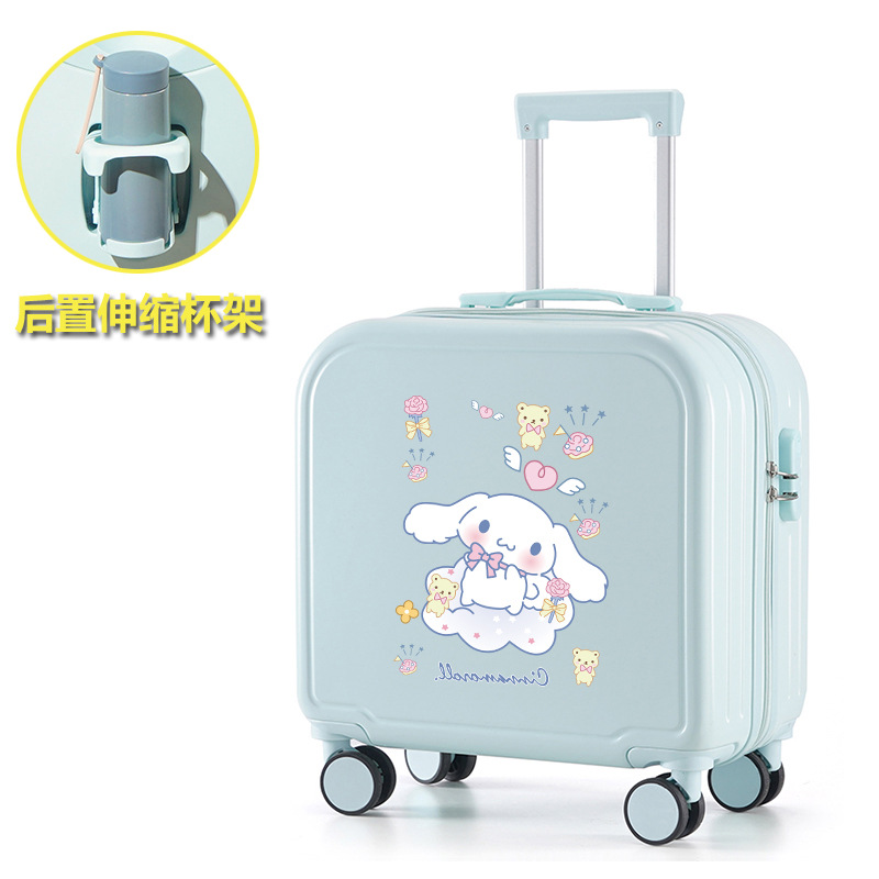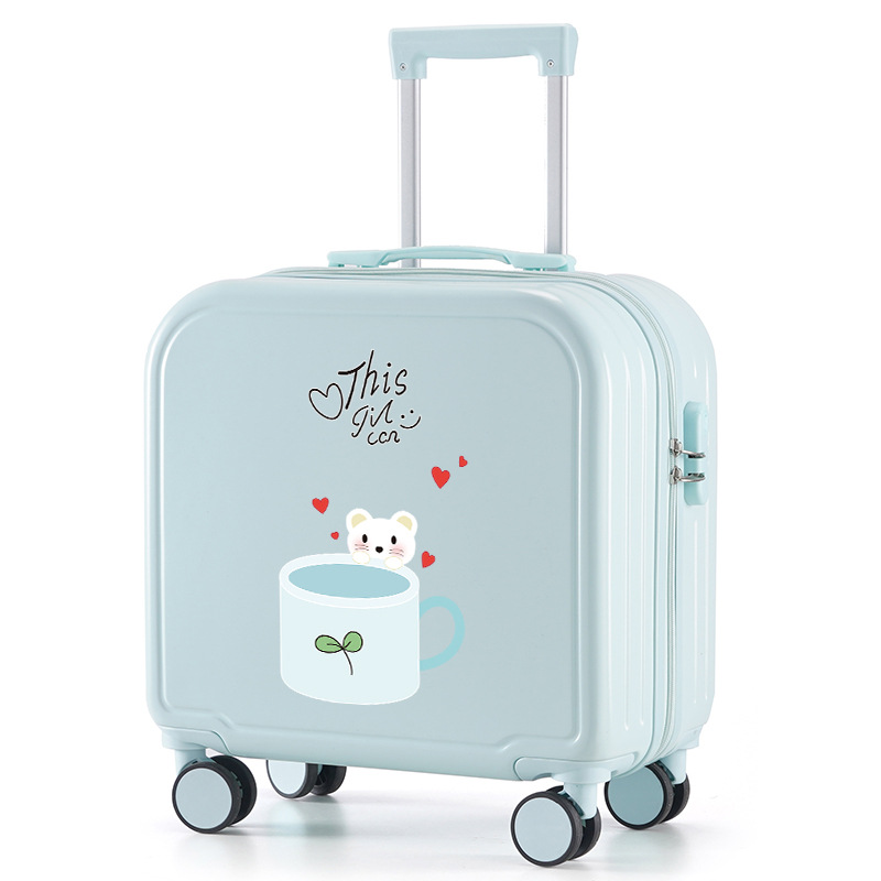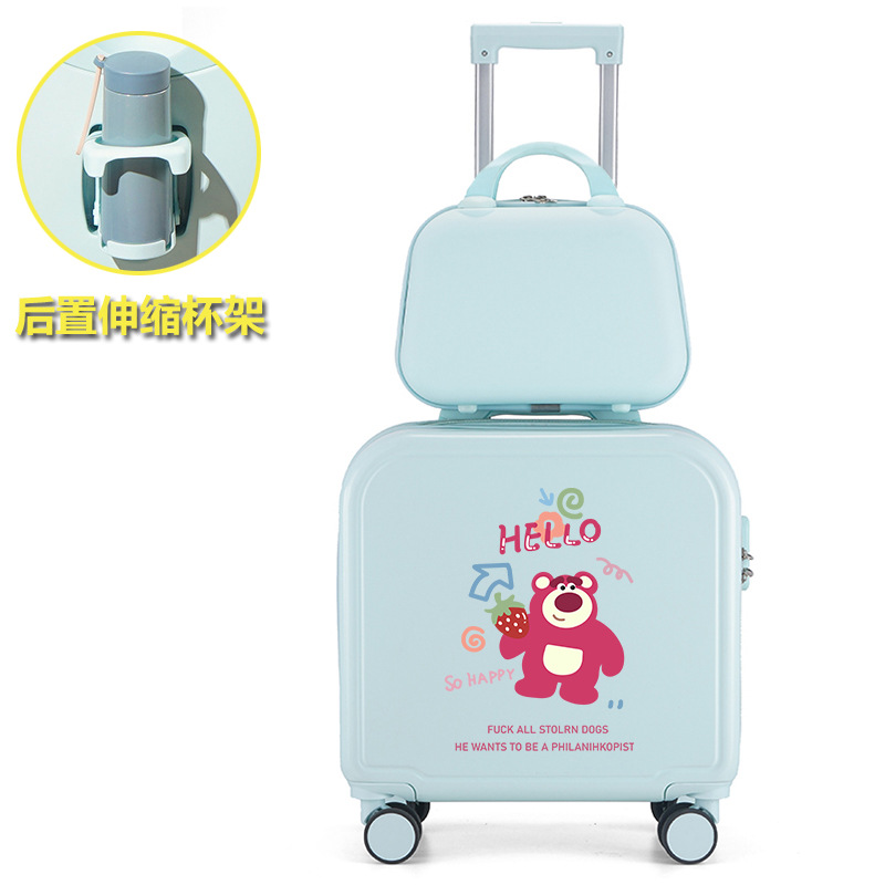 컵 홀더가 인쇄 된 학생 여행 암호 상자가있는 새로운 귀여운 만화 수하물 18 인치 보딩 트롤리 케이스
