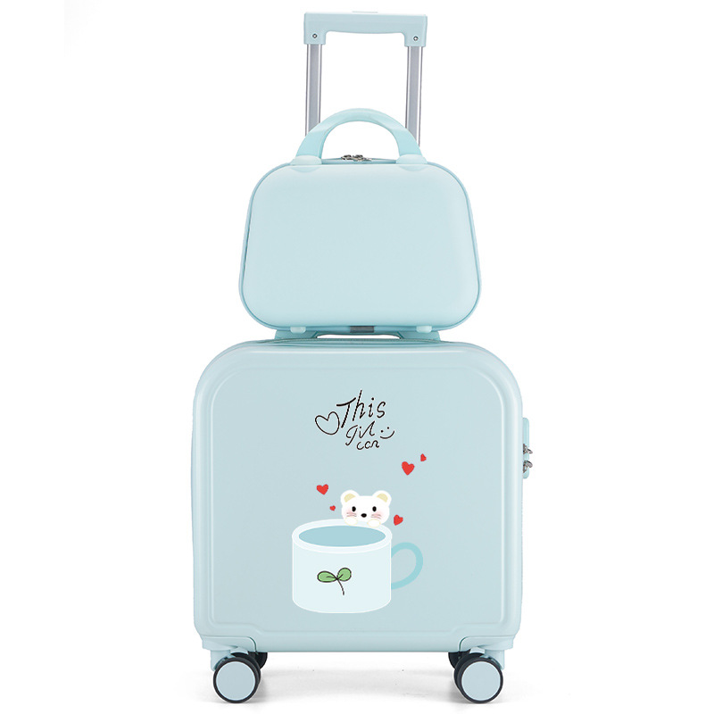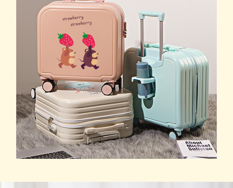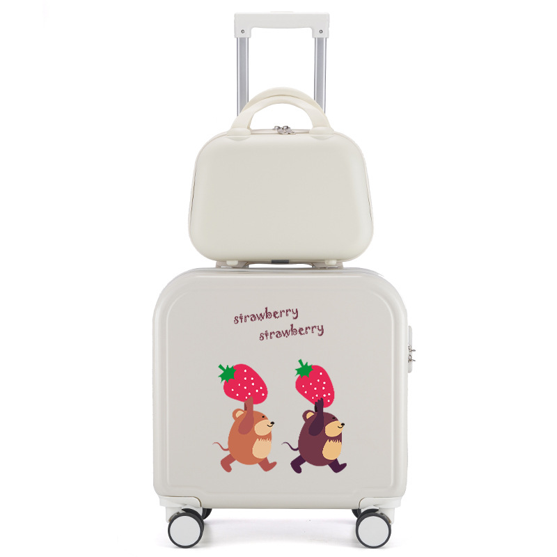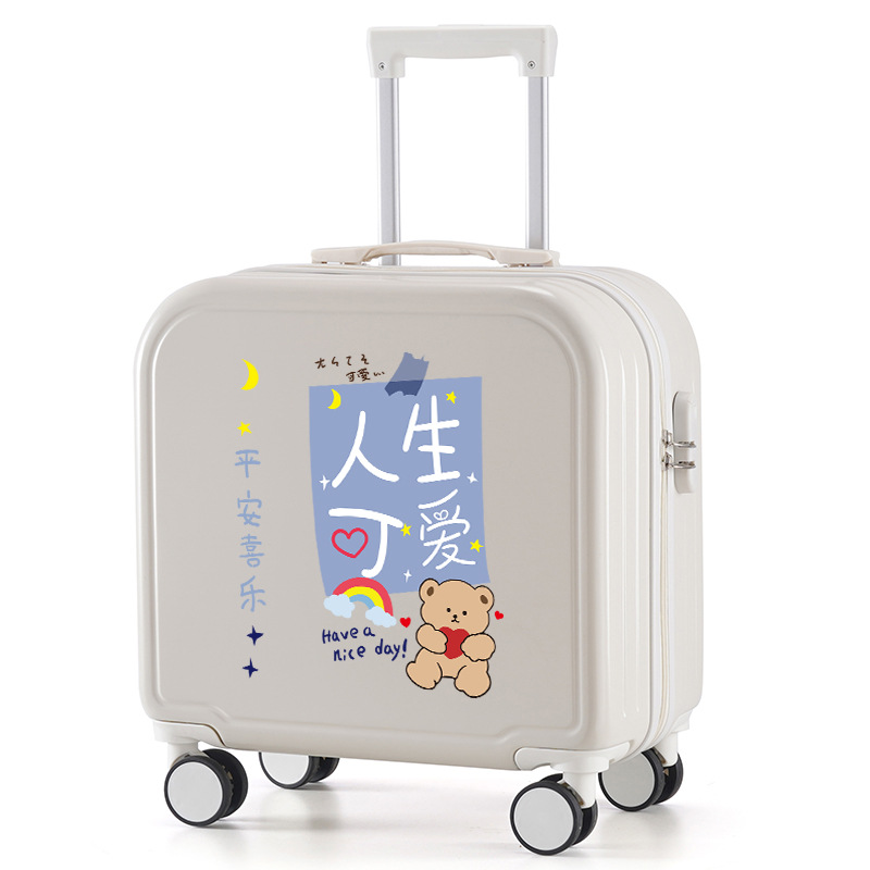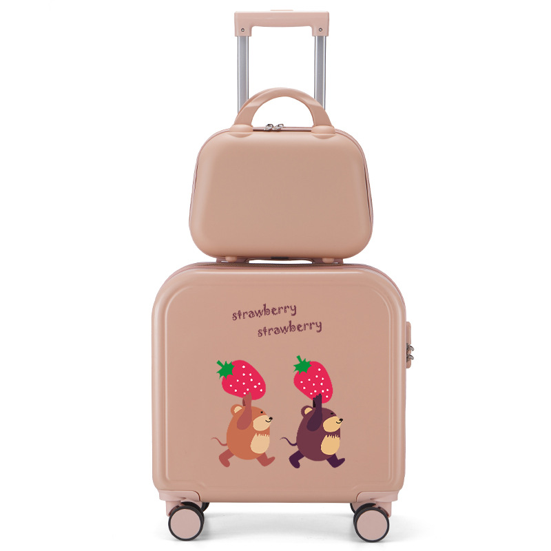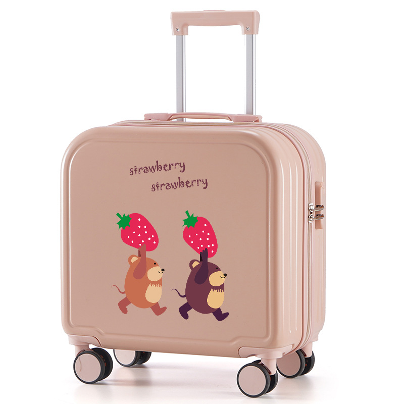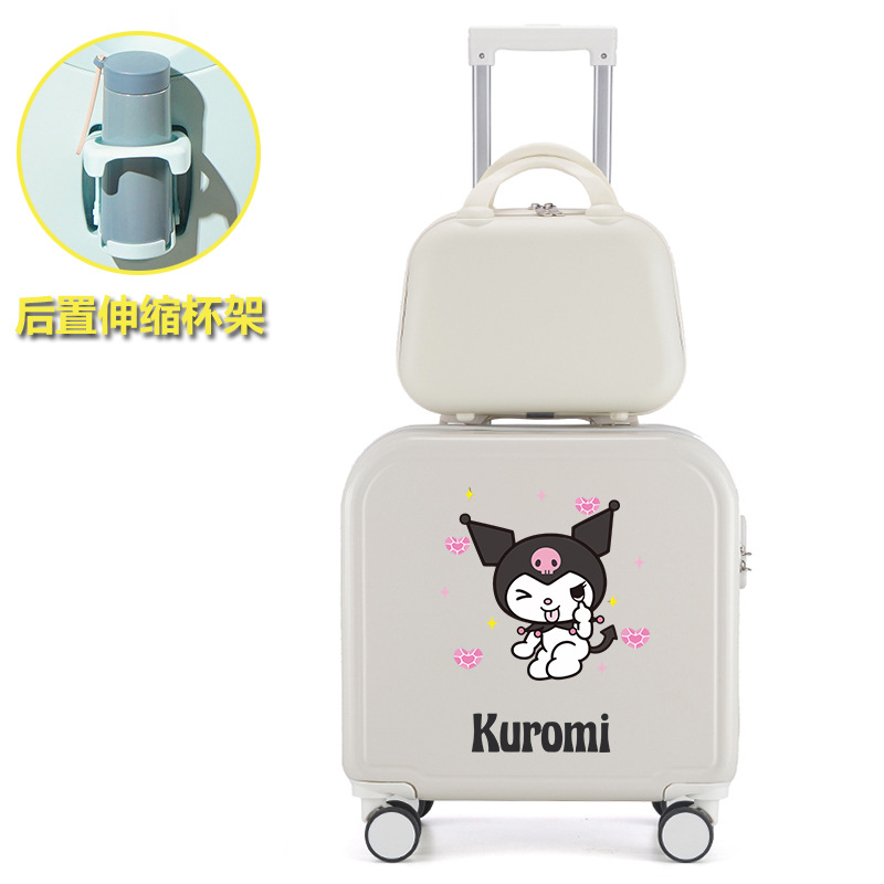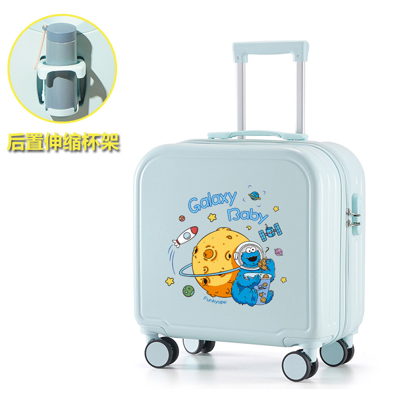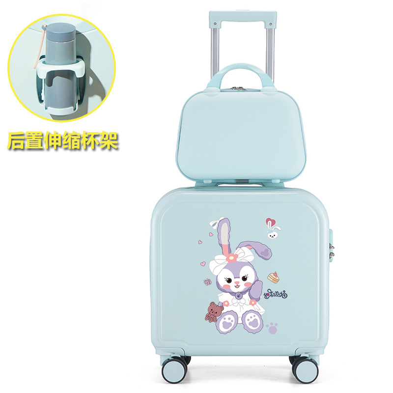 컵 홀더가 인쇄 된 학생 여행 암호 상자가있는 새로운 귀여운 만화 수하물 18 인치 보딩 트롤리 케이스